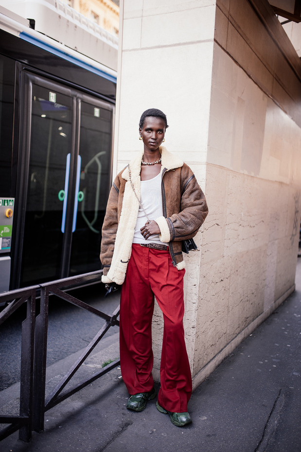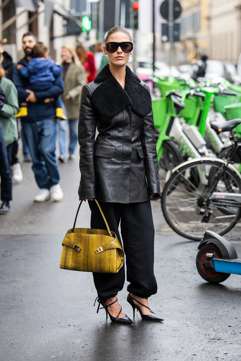 시어링 재킷으로도 미니멀한 분위기를 낼 수 있다는 사실, 알고 계셨나요? 방법은 간단합니다. 살짝 핏이 여유로운 수트 팬츠를 입고, 머리부터 발끝까지 검정을 고집하면 되죠. 칼라의 양털이 포인트 역할까지 수행해, 룩이 심심해 보일 걱정도 덜 수 있습니다.