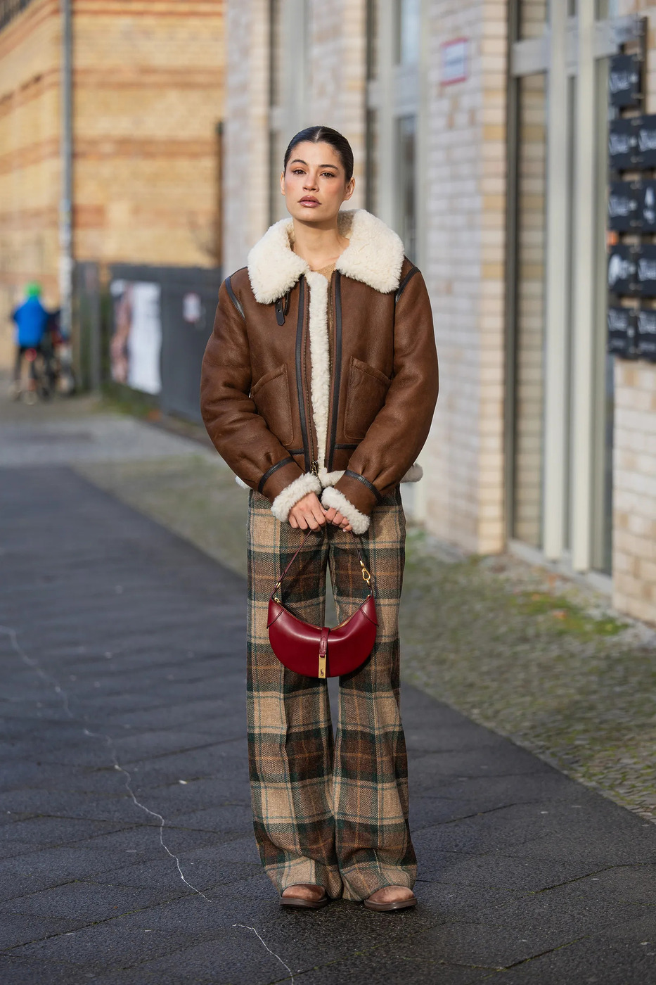 시어링 봄버 재킷을 입은 채 ‘파이브 가이즈’ 음료 잔을 든 톰 하디의 사진을 본 적 있을 겁니다. 시어링 봄버는 남성스럽다 못해 마초 무드를 풍기는 점이 특징인데요. 강렬한 존재감을 뿜어내는 만큼 믹스 매치를 연출했을 때 특히 빛납니다. 레트로풍 체크 팬츠나 데님 스커트처럼, 의외의 아이템을 활용하는 센스를 발휘해보세요.