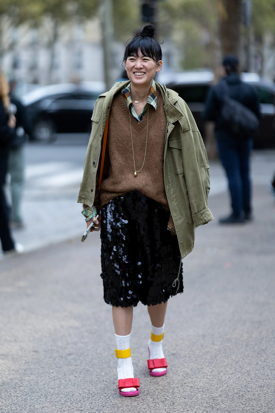 페미닌한 분위기의 아이템들과 매치할 경우, 믹스 매치의 멋을 극대화할 수도 있습니다. 시퀸이 가미된 화려한 스커트, 리본 장식 샌들처럼 말이죠.