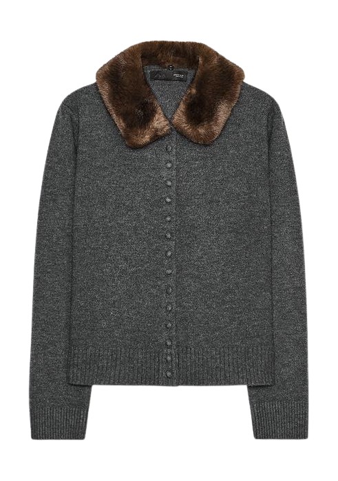자라 퍼 소재 라펠 니트 재킷