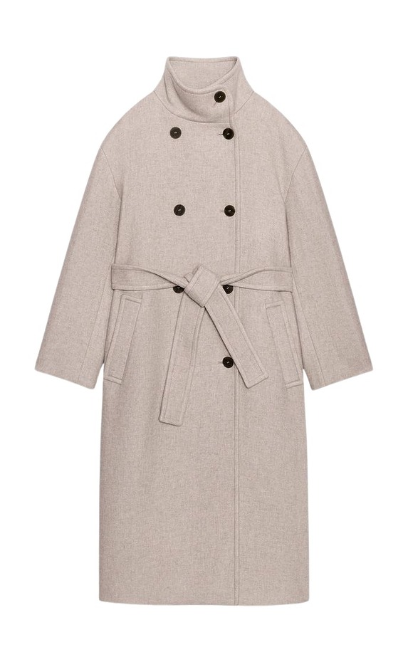 자라 벨트 소프트 하이넥 코트