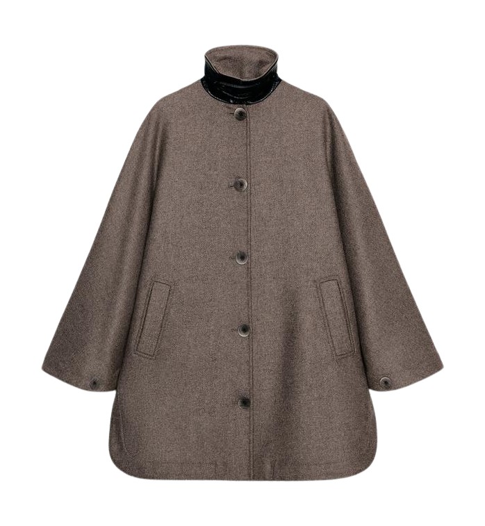 자라 배색 칼라 울 케이프 코트
