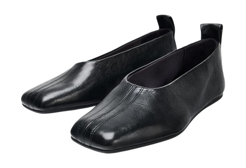 자라스퀘어 토 가죽 발레리나 슈즈