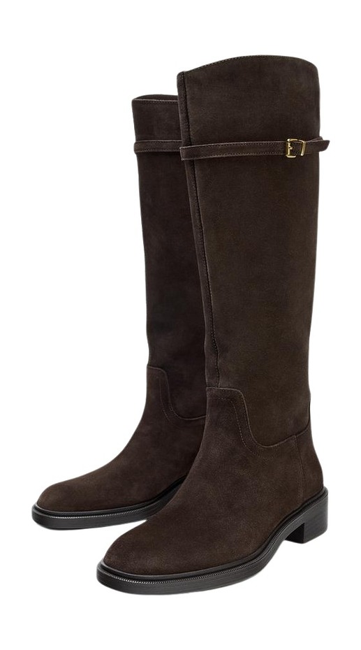 자라 스웨이드 플랫 승마 부츠