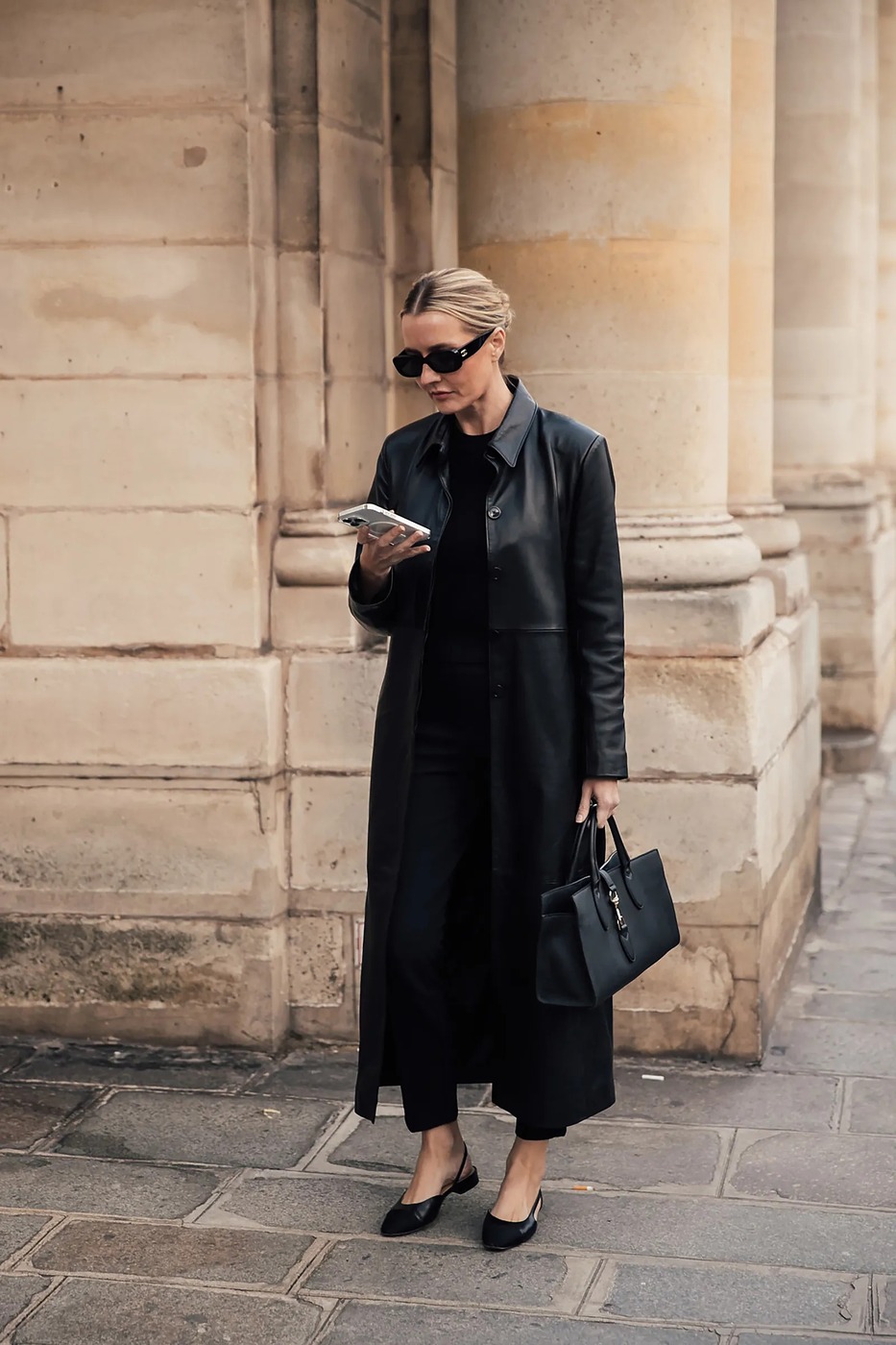 클래식한 검은색 레깅스는 런웨이 밖에서도 사랑받는 아이템입니다. 다양한 상황에서 활용도가 높아, 길거리의 패셔니스타들 역시 즐겨 입죠. 특히 검은색 레깅스는 그 자체로 클래식한 느낌을 주기 때문에 모노크롬 룩으로 입기 좋습니다. 블라우스, 가죽 카디건, 그리고 밑창이 평평한 플랫 슈즈를 모두 검은색으로 통일하면 근사한 룩이 완성되죠. 주말 오후의 약속은 물론, 출근 룩으로도 큰 무리가 없습니다.