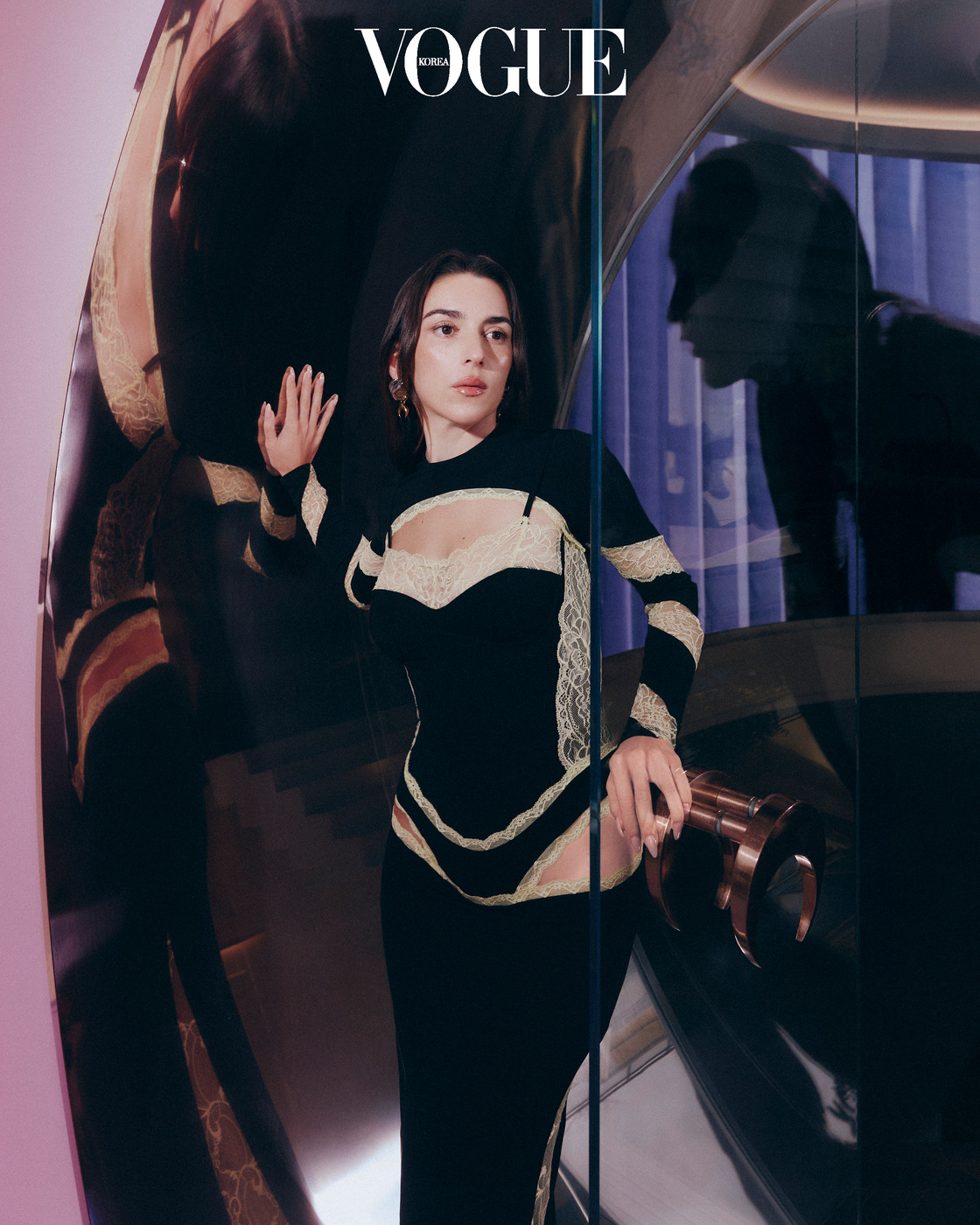 “여기에 제 세계가 모두 담겨 있어요.” 마린 세르(Marine Serre)가 서울 한남동에 위치한 첫 플래그십 스토어를 안내하며 말했다. 란제리 스타일을 변형해 노란 레이스로 장식한 블랙 드레스를 입은 그녀는 환한 미소로 <보그>를 맞이했다. 들뜬 표정으로 공간을 소개하는 그녀에게서 이곳에 대한 자신감과 기대감이 느껴졌다. 인터뷰를 위해 2층 소파에 앉으니, 창밖으로 매장 앞 정원과 한남동 거리가 한눈에 들어왔다. 순간 그녀가 표현하려는 것이 무엇인지 단번에 알 수 있었다. 그곳은 단순히 옷을 판매하는 매장이 아니라 편안한 집이자 브랜드가 추구해온 순환과 재생, 균형의 미학을 담은 집합체였다. 마린 세르는 브뤼셀의 예술 학교 라 캉브르(샤넬의 새로운 수장 마티유 블라지, 생 로랑의 역사를 다시 쓰는 안토니 바카렐로 등 지금 패션계를 선도하는 디자이너를 배출해 뜨거운 관심을 받고 있다!)를 졸업하고 2017년 LVMH 프라이즈에서 우승하며 패션계의 새로운 인물로 떠올랐다. 재학 중 디올, 알렉산더 맥퀸, 메종 마르지엘라에서 인턴십을 하고, 발렌시아가 디자인실을 거쳐 2018 가을/겨울 패션 위크를 통해 성공적으로 데뷔했다. 재활용 소재와 예술, 기능성, 지속 가능성을 조화롭게 결합한 디자인으로 주목받았다. 최근 남성복 컬렉션과 가구까지 선보이며 브랜드를 확장하고 있으며, 서울에 첫 플래그십 스토어를 열며 또 다른 시작을 알렸다.