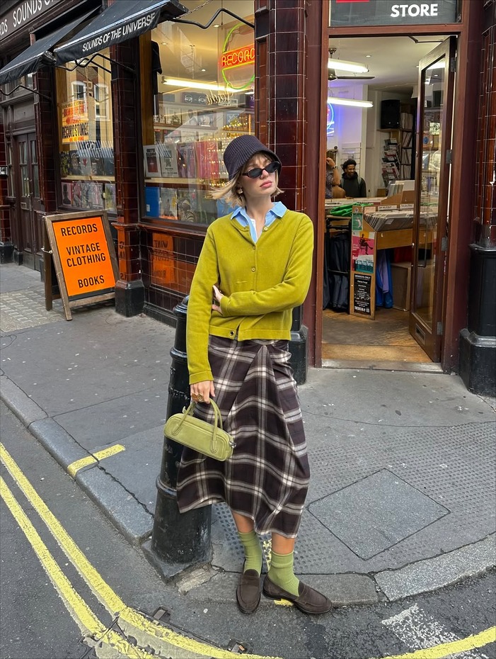 얼마 전 서울을 찾아 수많은 사진을 포스팅해 화제가 됐던 린다도 코스의 체크 스커트를 다양한 방식으로 스타일링했습니다. 으레 생각하는 성숙하고 클래식한 연출이 아닌, 빈티지 무드에 2025년식 감성을 얹은 모습이었죠. 지난여름엔 폴카 도트가 있었다면, 이번 겨울엔 역시 체크무늬가 대세입니다. 아우터와 부츠 같은 겨울 아이템과의 매칭에서도 체크무늬는 훨씬 더 유연한 패턴이죠.