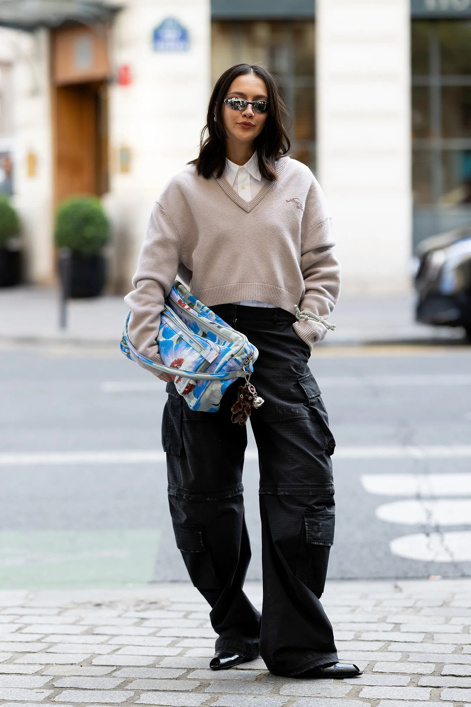 학생이라면 캠퍼스에서, 직장인이라면 사무실에서 통하는 조합도 있어요. 프레피 무드의 브이넥 니트와 유틸리티 카고 팬츠의 만남은 언뜻 보면 상반돼 보이는데요. 올해는 미샤 바튼, 힐러리 더프 같은 2000년대 ‘잇 걸’을 다시 한번 소환해보시기 바랍니다. 당시 랄프 로렌도 증명한 카고 팬츠 믹스 매치 공식이죠.