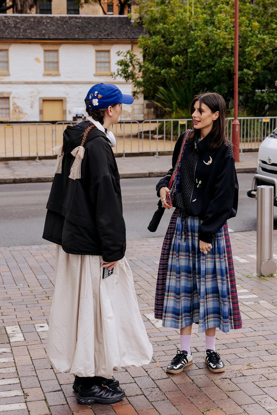 마지막으로 그런지 무드의 체크 테이블 스커트도 빠질 수 없겠죠? 2025년에도 펑크 감성을 추구한다면 이걸 놓칠 이유가 없습니다. 비비안 웨스트우드나 초포바 로위나, 혹은 빈티지 숍 아이템 등 조금은 위험해 보여도 매력적인 디자인을 고르는 게 포인트예요. 여기에 레트로 스니커즈와 양말, 후디나 봄버 재킷을 더하면 은근 반항기를 드러낼 수 있죠.
