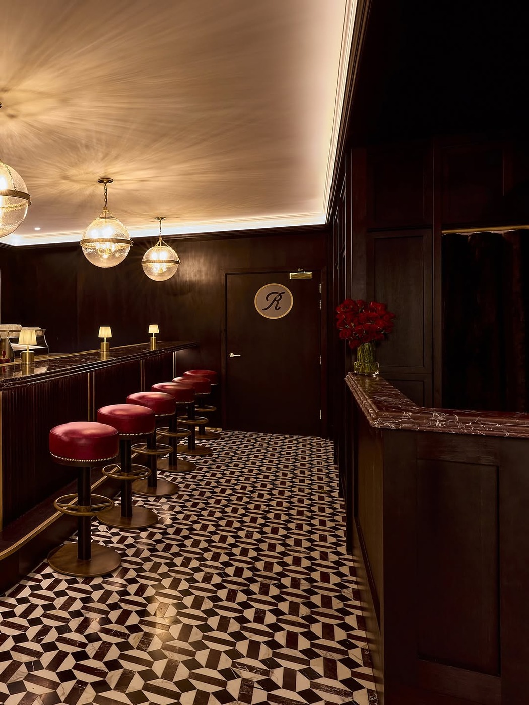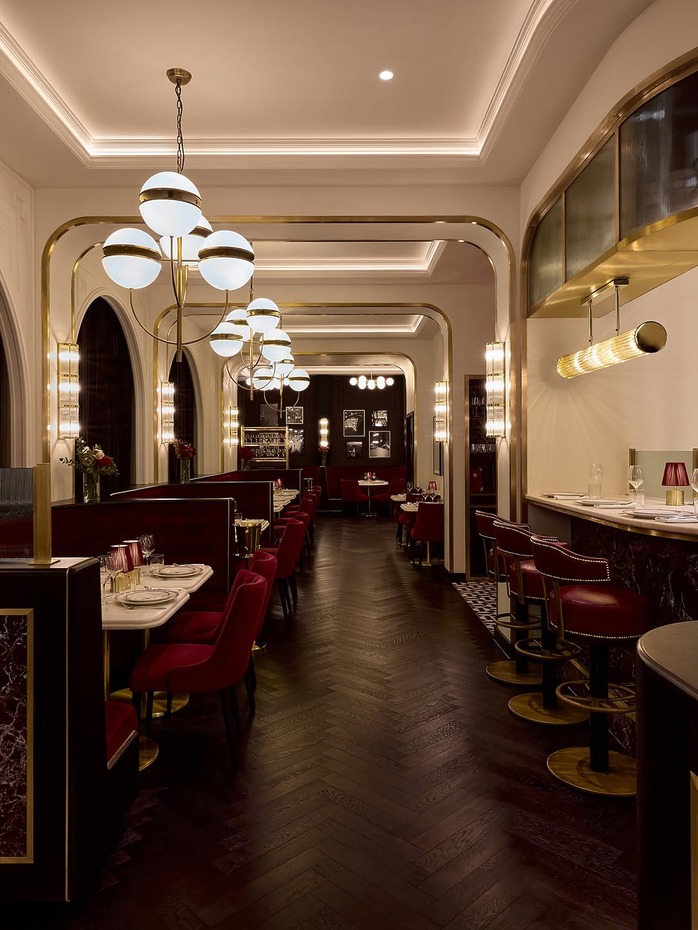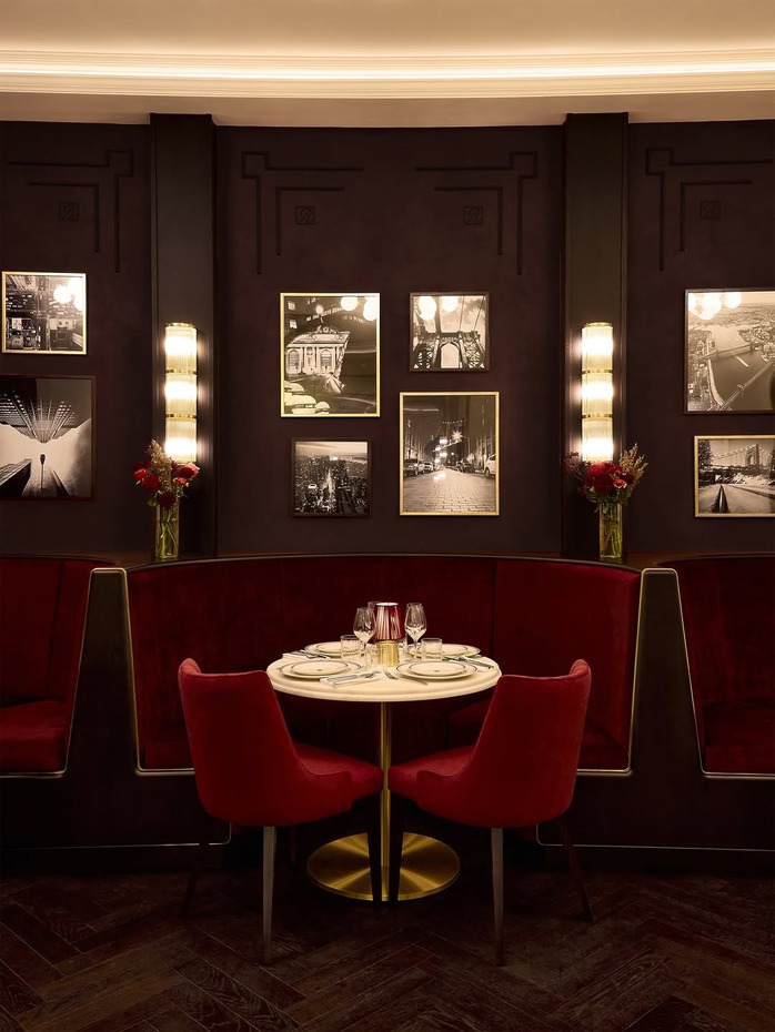 레스토랑 상호 로니스는 창립자 로니 파이그(Ronnie Fieg)의 이름에서 따왔습니다. 키스 매장과 이어지는 고급스러운 분위기의 내부 인테리어를 보여주는데요. 목재와 벨벳을 활용한 벤치, 짙은 스테인 오크 바닥과 황동을 이용한 디테일 등이 차분하면서도 아늑한 느낌입니다.