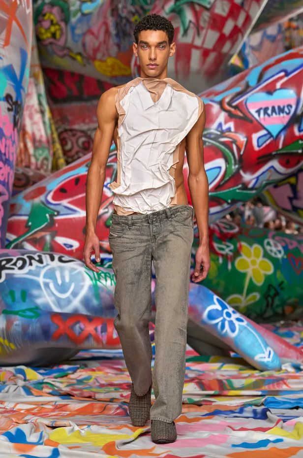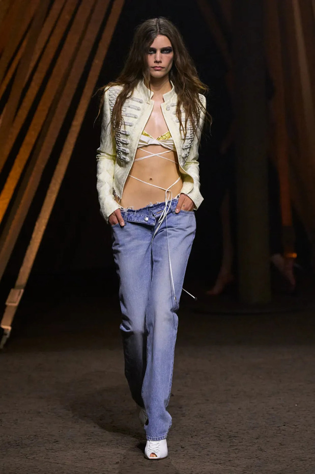 글렌 마르탱 또한 디젤 2025 가을/겨울 컬렉션에서 꼬리뼈 가까이 내려오는 로우 라이즈 청바지를 선보였습니다. 공교롭게도 그 청바지가 로스앤젤레스로 떠나는 제 캐리어 안에 들어 있었죠. 탑승장에서 제로 콜라를 마시며 과연 이 실험이 어떻게 흘러갈지 궁금해하고 있었습니다.