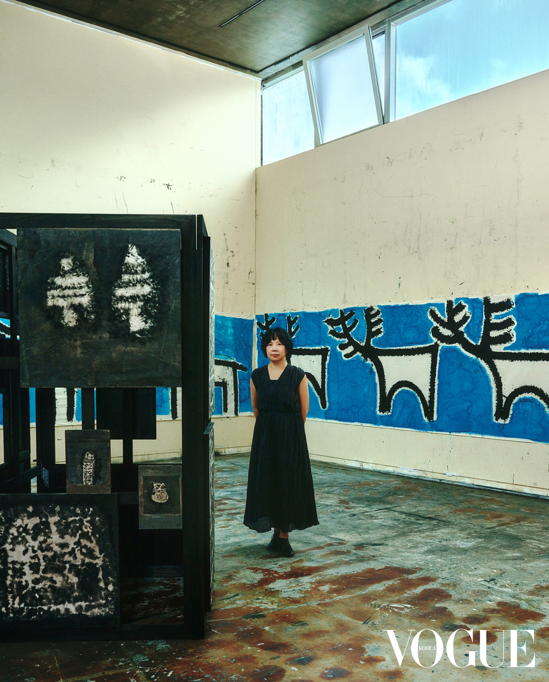 “베를린에도 작업실이 있어요. 그곳에서 유학하며, 작품성을 인정받아서 영구적으로 사용할 수 있는 작업실을 받았거든요. 베를린 숲속의 작업실에서는 인간의 언어와 문명의 기계음이 멈춘 상태에서 자연의 소리를 들을 수 있어요. 그곳에서 치열하게 고민하며 완성한 100점 연작이기에 애정이 깊어요. 작업실이 작가의 작품에 얼마나 큰 영향을 주는지 알 수 있는 증거지요.” 베를린 숲속 작업실에서 영구적으로 머물 수 있었지만, 새로운 변화가 필요해 얼마 전 슈프레강 변으로 작업실을 옮겼다. 100년 전에 지은 공장 건물로, 예전보다 규모는 작지만 흐르는 물살을 보니 영혼도 맑아지는 것 같아 활력이 생긴다.