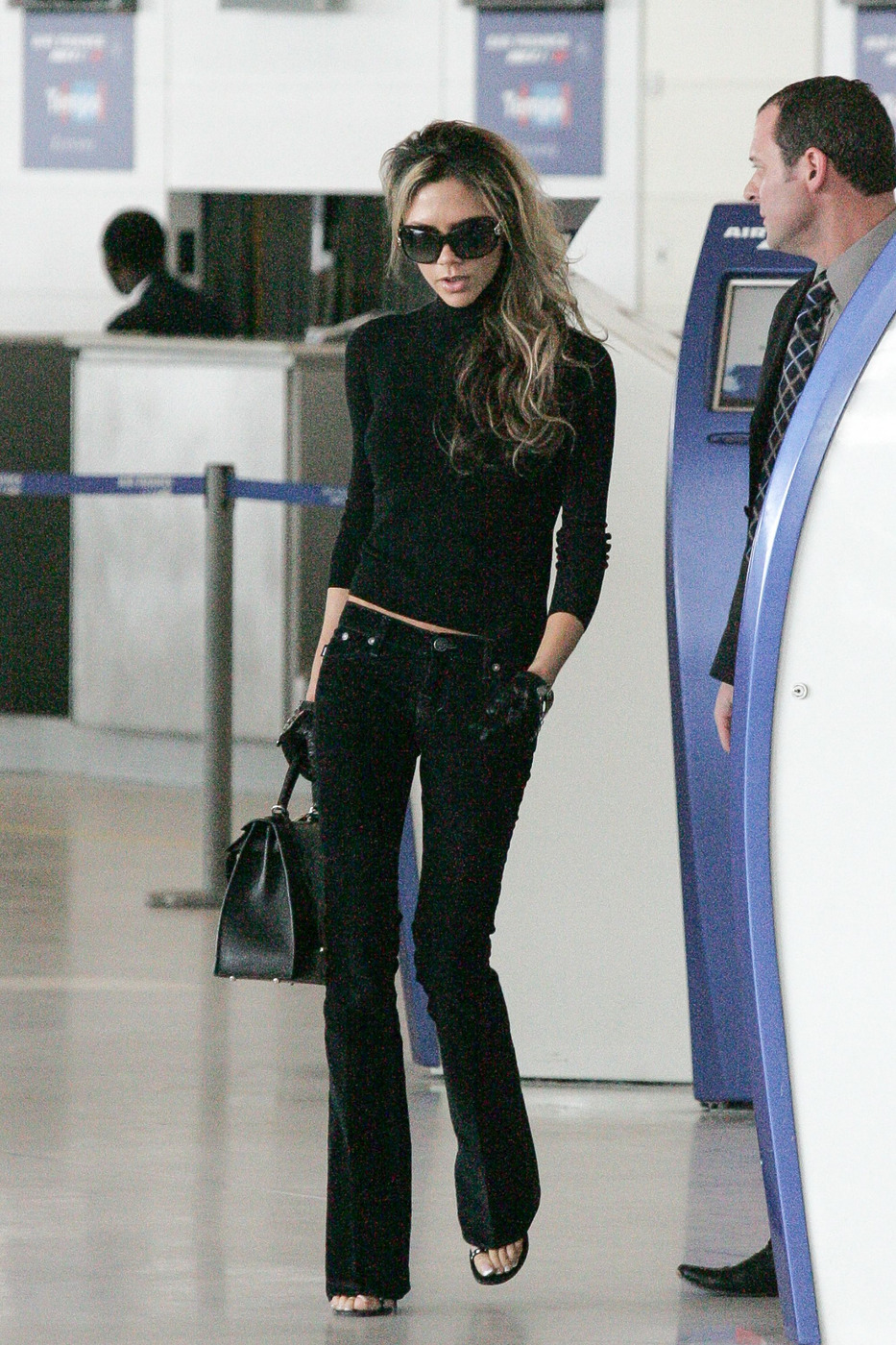 하지만 2000년대부터 이어온 플레어 진을 향한 사랑은 여전히 뜨겁습니다. 이는 그녀의 시그니처 스타일의 핵심 요소가 되었죠. 25년 전 빅토리아는 플레어 실루엣에 큰 버클 벨트, 몸에 딱 맞는 탱크 톱, 그리고 얼굴의 반 이상을 가리는 큼지막한 선글라스로 룩을 완성했습니다. 이후 해가 거듭될수록 스타일은 조금씩 부드러워졌습니다. 탱크 톱은 무지 티셔츠나 터틀넥 스웨터와 매치했고, 오늘날에도 플레어 진을 중심으로 미니멀하고 세련된 룩을 고수하죠.