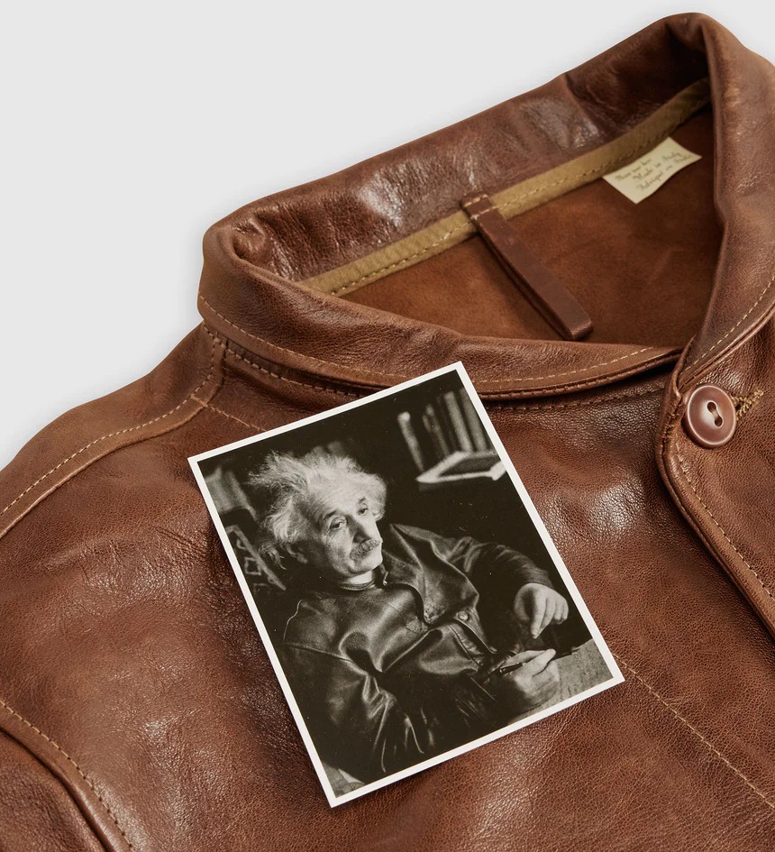 LVC(Levi’s Vintage Clothing)는 멘로 코삭 가죽 재킷을 현대적으로 재해석해 출시합니다. 아인슈타인이 실제로 소유했던 재킷은 2016년 크리스티 경매에서 리바이스가 구매하면서 역사적인 지위를 얻었는데요. 당시 옷에서 톡 쏘는 파이프 담배 향이 은은하게 났던 것으로 전해집니다.