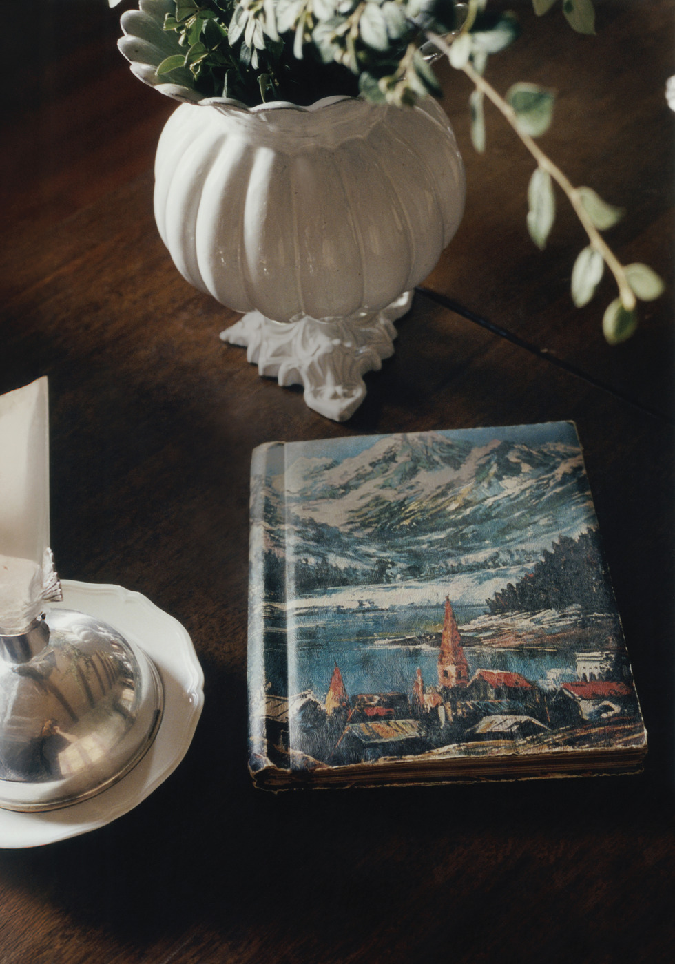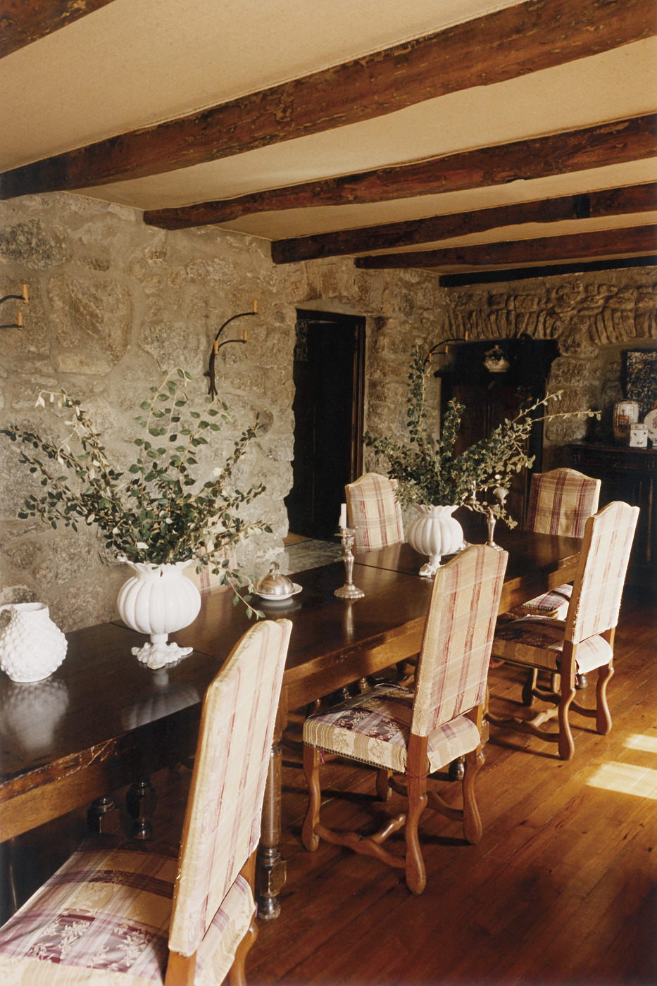 이곳에는 어떤 틀도 존재하지 않는다. 예상치 못한 것들이 역사적인 것과 마주하는 느낌이랄까. 훈제 송어는 고산지대에서 자란 닭 요리와 집에서 키운 채소와 함께 서브되고, 루이 13세 양식의 구부러진 양의 다리뼈 모양 의자에는 인디아 마다비(India Mahdavi)가 모노프리(Monoprix)를 위해 디자인한 쿠션과 화병이 어우러진다. 아스티에 드 빌라트의 도자기, 세츠코 클로소프스카 드 롤라(Setsuko Klossowska de Rola)의 흰 고양이 오브제, 눈처럼 하얀 호박 모양 화병까지, 함께 어우러진 풍경으로는 시대와 스타일을 쉽게 추측할 수 없는 모든 것이 산뜻하게 섞여 있다.