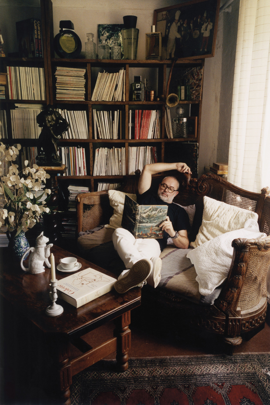 루시앙의 저택에 들어서면 가장 먼저 눈에 띄는 버섯 모양 열쇠는 과거의 영광을 상기하는 진갈색 리셉션 데스크 뒤에 여전히 걸려 있고, 커다란 주방에 놓인 ‘피아노(옛 프랑스식 주방 조리대를 의미한다)’도 그대로다. 하지만 여름이 되면 들려오는 것은 터키색 수영장의 찰랑거리는 물소리와 매미 울음소리뿐이다. 그러다 겨울이 되면 로제르산맥 남쪽 기슭에서 불어오는 차가운 북서풍 소리가 호텔을 감싼다. 오래된 와인 저장고는 서재로 탈바꿈했는데, 루시앙은 그곳에 이제껏 수집한 수천 권의 패션 잡지와 거대한 향수병을 진열해두었다. <셀프 서비스> <러브> <더 페이스> <개러지> 등 온갖 잡지가 그의 가족사진과 피에르 콩바(Pierre Comba)와 에르베 디 로사(Hervé Di Rosa)의 석판화, 많은 장신구 틈에 놓여 있고, 회전목마의 말이 거대한 벽난로 아래에서 힘차게 달리는 자세로 멈춰 서 있다.