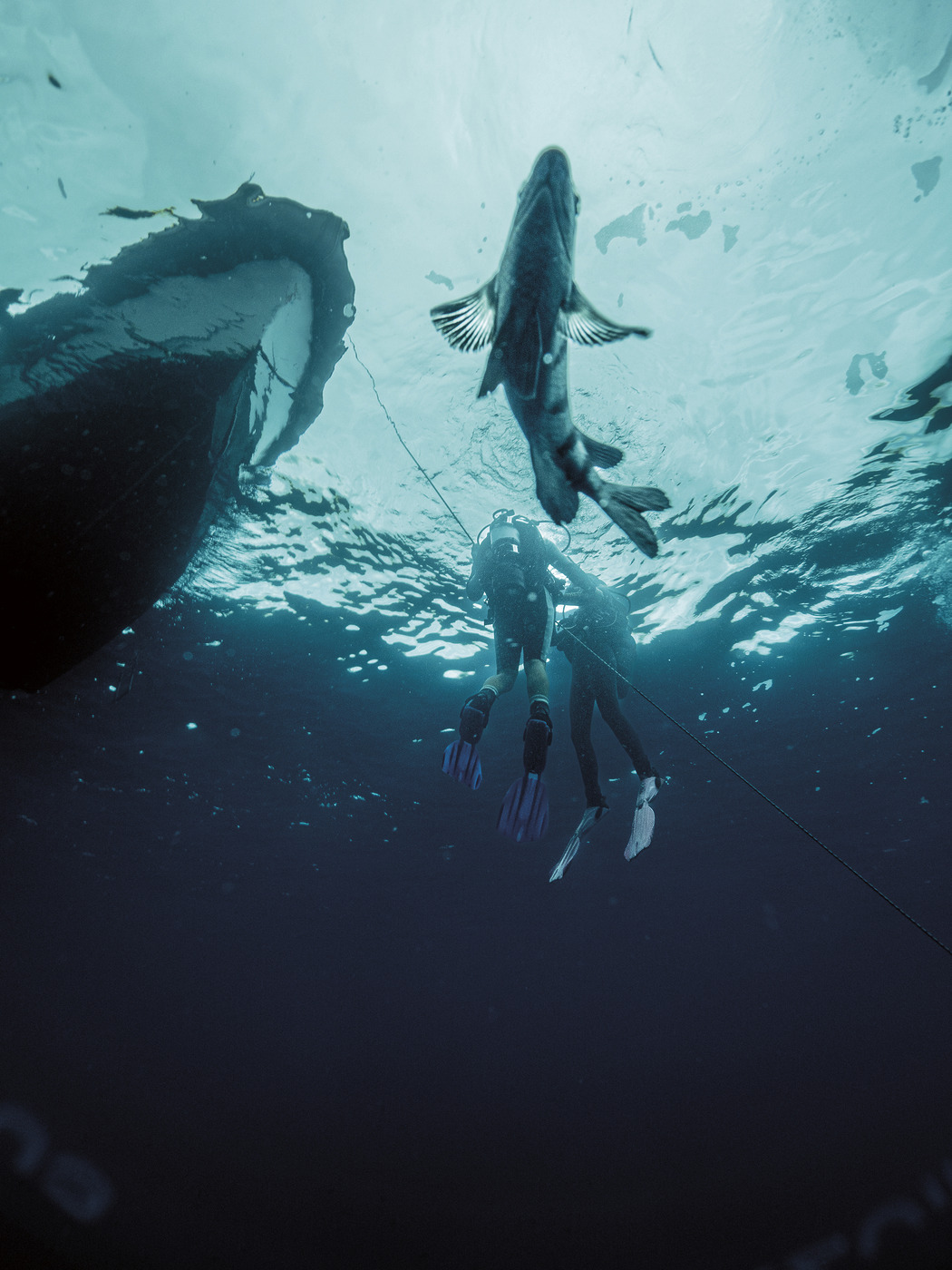 마침내 선장이 완벽한 타이밍을 포착했다. 물살을 가르는 삼각형 등지느러미가 유유히 떠오른 순간, 사인을 받은 나는 조용하지만 재빨리 바닷속으로 미끄러져 들어갔다. 내가 만난 5m 길이의 고래상어는 크기가 지금보다 세 배 이상 더 자랄 수 있는 종의 특성을 고려하면 왜소한 편이었다. 플랑크톤을 찾아 우아하게 유영하는 고래상어의 모습을 고요히 바라보는 일 외에 나는 별다른 일은 하지 않았다. 그러다 오므린 입술 사이로 수천 개의 작은 이빨이 희미하게 보였다. 고래상어는 천성적으로 호기심이 많지만, 내 존재에는 무관심해 보였다. 40분의 제한 시간이 막바지에 이를 무렵, 온순한 거인의 진주 같은 반점 무늬가 깊고 푸른 심해 속으로 천천히 사라졌다.