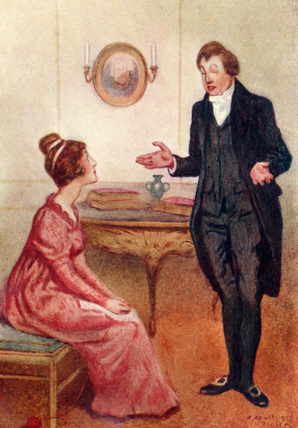 콜린스 씨에게서는 수동 공격성이 엿보입니다. 그는 베넷가의 난로 옆에서 밤늦게까지 설교문을 낭독하는 남자이기도 하죠. 엘리자베스와 약혼 비슷하게 한 상태이기도, 혹은 그저 사촌일 뿐이기도 한 콜린스 씨의 망신스러운 점은 여자가 말하는 걸 가만히 내버려두지 못한다는 겁니다. 그는 꿩 대신 닭이라는 듯 엘리자베스의 가장 친한 친구와 결혼함으로써 망신살의 정점을 찍었죠. 자, 다음 남자로 넘어갑니다! —M. F