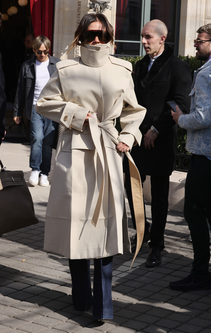 이번이 처음도 아닙니다. 하이넥 코트는 얼굴을 가리기 좋아하는 빅토리아 베컴이 가장 좋아하는 아이템 중 하나거든요. 여기서 우리가 유심히 지켜봐야 할 부분은 스타일링입니다. 그녀는 늘 길고 벨트가 달린 코트를 고집합니다. 어깨 견장 덕분에 어딘가 남성적인 분위기가 느껴지기도 하고요. 바지 핏은 슬림과 와이드를 오가지만, 늘 전면부에 플리츠가 잡혀 있는 디자인을 선택하죠. 하이넥 코트 본연의 세련되고 우아한 멋에 집중한 스타일링입니다.