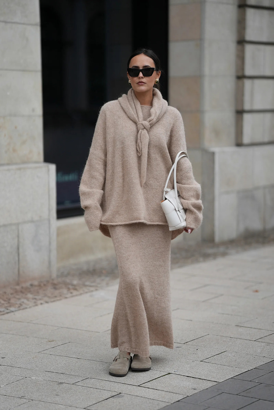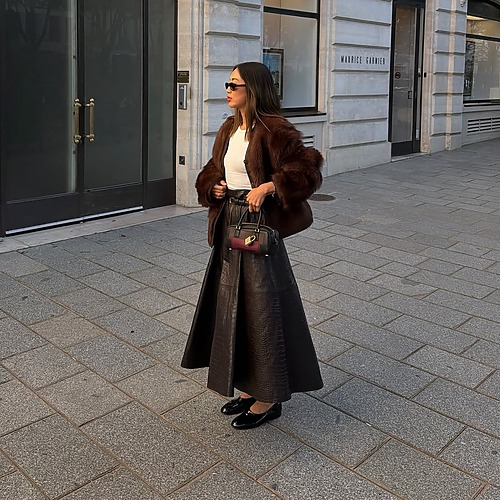 미우미우와 막스마라가 보여준 브라운 계열 니트 셋업은 이번 시즌 가장 실용적이면서도 자주 입고 싶은 조합입니다. 니트 셋업은 특히 볼륨감이 생명인데요. 느슨하게 떨어지는 박시한 스웨터와 비슷한 톤의 스커트를 매치하고, 어깨 라인을 잡아주는 코트나 벨트, 머플러로 볼륨을 살리면 힘주지 않은 듯 유려한 겨울 룩이 완성되죠. 반복해서 입어도 질릴 일이 없어요.