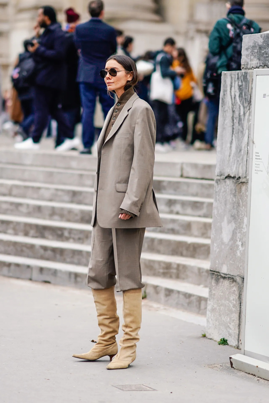 아무래도 바지와 제일 많이 매치하게 되죠. 바지가 부츠 밖으로 마구 삐져나온 연출이 요즘 제일 자주 보이더군요. 무심한 듯 멋 내기 제일 좋거든요. 헐렁한 청바지와도 궁합이 훌륭하고요. 아예 바지로 부츠를 살포시 덮으면, 펌프스와 거의 구별되지 않죠. 욱여넣거나, 덮거나 둘 다 동시에 활용해도 좋습니다. 거리 위의 멋쟁이를 보세요. 오글거리지 않고 자연스럽죠. 반면 바지를 부츠 속으로 전부 집어넣어서 깔끔한 인상을 연출하는 것도 새로운 느낌을 주는군요. 이때는 바지가 스트레이트 핏이어야 수월합니다. 확실한 건, 모피 재킷에 청바지 조합이든, 셋업이든 곧잘 어울린다는 거죠.