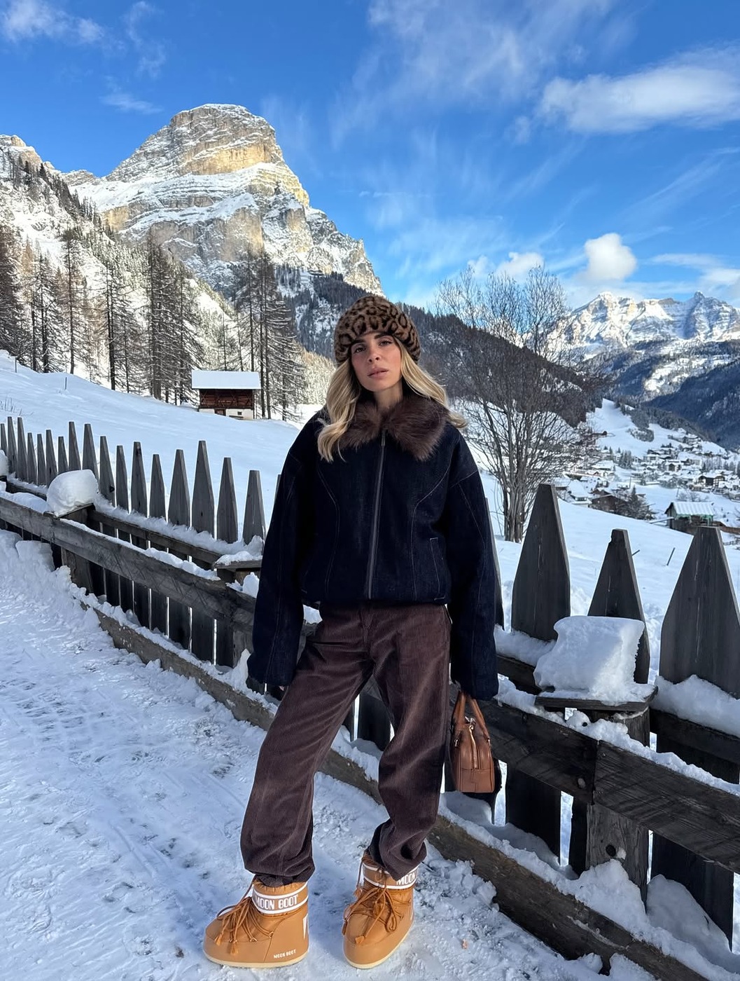 스위스의 세인트 모리츠, 그슈타트, 프랑스 쿠르슈벨 1850, 콜로라도의 애스펀. 이름만 들어도 눈으로 하얗게 뒤덮인 겨울의 낭만이 저절로 연상됩니다. 스키 마니아든, 스노보드를 즐기든, 겨울 리조트나 산장 분위기 자체를 좋아하든, 이런 스키 휴양지는 꼭 여행하고 싶은 버킷 리스트 중 하나일 만큼 특별하고 이국적이죠. 패션 피플들은 크리스마스를 앞두고 떠난 겨울 휴양지에서 또 하나의 런웨이를 펼치고 있습니다. 가장 먼저 챙겨야 할 것이 무엇이냐고요? 바로 문 부츠와 퍼 모자입니다!