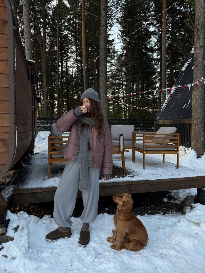 리조트에서 보내는 ‘힐링 데이’는 어떨까요? 그레이 스웨트 팬츠에 톤온톤으로 니트를 맞춰 입는 순간 이미 휴가 모드에 돌입하게 됩니다. 그레이 톤의 미묘한 차이가 편안함에 깊이를 더해주고, 여기에 퍼 아우터나 패딩 재킷을 매치하면 완벽하게 포근해져요. 두꺼운 헤드 밴드나 비니, 볼캡 등 액세서리만 바꿔도 분위기가 달라져서 그날그날 기분에 따라 새롭게 연출하기 좋죠.