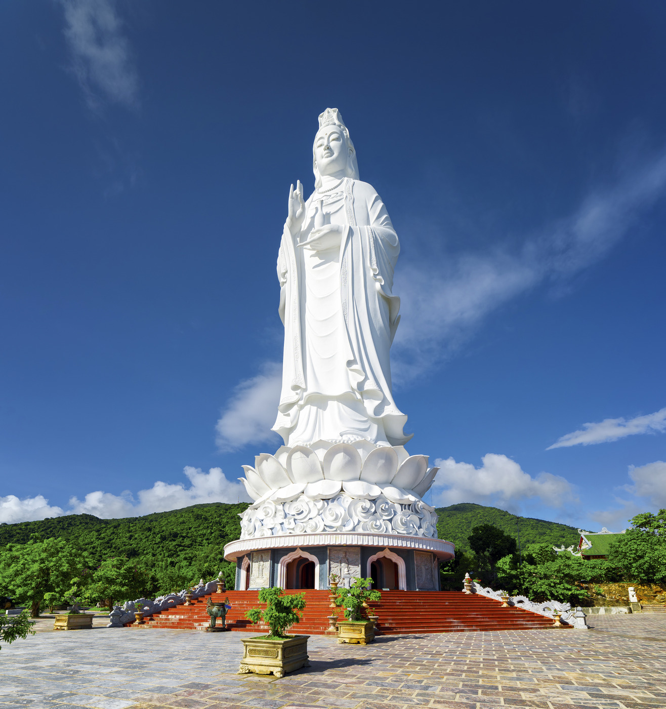 이번에는 남쪽 다낭으로 날아갔다. 푸른 논과 바다 사이로 펼쳐진 도시, 잠든 신처럼 솟아오른 신비로운 섬들. 린응사(Linh Ung Pagoda)로 가는 길에 멀리 언덕 위 하얀 수직선이 눈에 들어왔다. 진실의 손가락처럼 선명한 그 형상은 바로 관세음보살이었다. 그 성소로 향하는 우리에게 길조가 따랐다. 이곳은 과거 어부들이 선짜반도의 모래톱에 떠내려온 불상 하나를 발견하고 사당을 세운 곳으로, 그날 이후 바다는 잠잠해졌고 관세음보살은 어부와 뱃사람들의 수호신이 되었다.