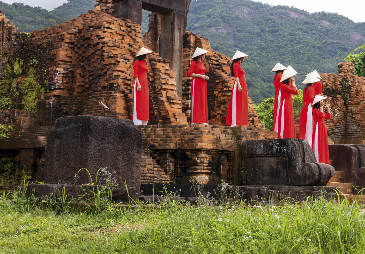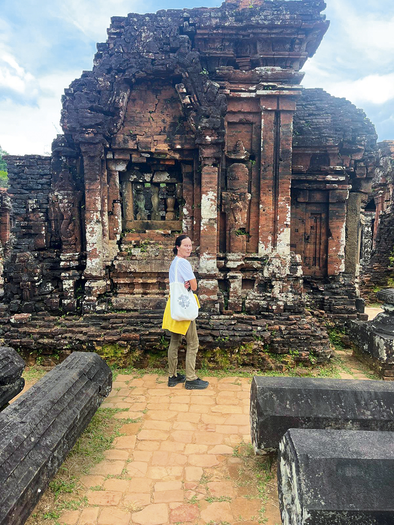 영적 깨달음은 다음 날 짬(Cham) 사원 유적지로 향하는 길에서 찾아왔다. 고고학자 쩐끼프엉(Trần Kỳ Phương)은 존경받는 샤먼처럼 우리의 길잡이가 되어주었다. 그는 심각하게 방치된 데다 미군의 폭격까지 맞아 훼손된 유적을 묵묵히 되살려왔다. 사원 단지로 이어지는 오솔길 아래 작은 박물관에는 4세기부터 13세기에 걸친 초창기 힌두 문자판이 총탄에 파인 자국과 함께 소장되어 있었다. 샤이바(Shaiva) 힌두 사원들은 한때 짬파(Champa) 왕국의 종교 수도였다. 불에 구운 벽돌로 쌓아 올린 사원, 신성한 아치형 공간을 지나 정화된 몸으로 신의 형상 혹은 요니-링가가 놓인 제단으로 향하던 순례자의 발걸음이 느껴졌다.