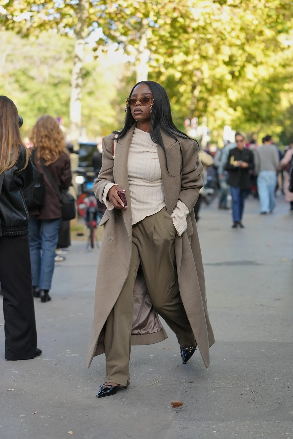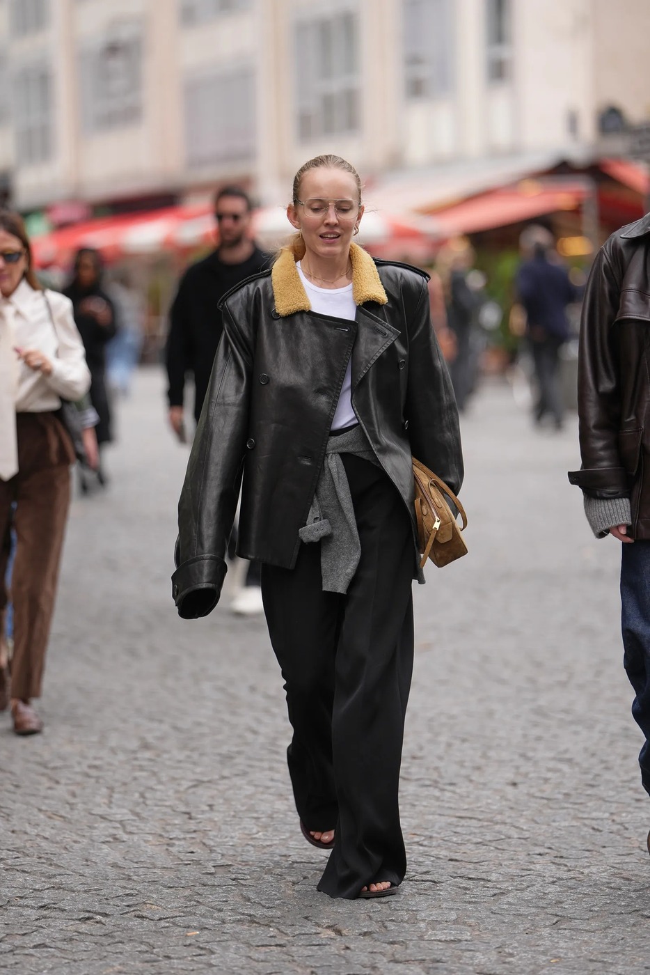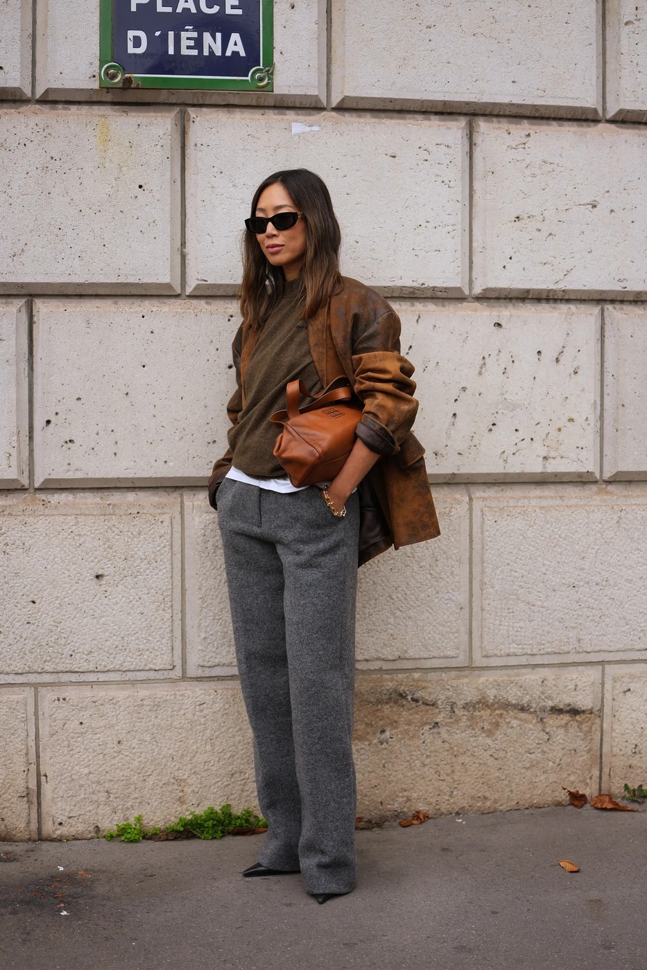 지난 패션 위크 기간에도 눈에 띄었습니다. 많은 참석자가 두툼한 울 팬츠에 니트 상의를 입고, 랩 코트 등의 베이식한 아이템을 페어링하는 모습을 보였죠. 파리에서 찍힌 이 사진 좀 보세요. 울 팬츠에 크루넥 스웨터, 레더 블레이저, 뾰족 코의 펌프스를 매치해 간단하게 스타일리시한 룩을 연출했습니다. 같은 옷차림에 청바지를 입었어도 꽤 괜찮았을 겁니다. 하지만 발등 위에 울 소재 특유의 자연스러운 주름이 질 때 전체적으로 흠잡을 데 없이 깔끔해 보이는 룩이 되었고, 모두가 원한다는, 노력 없이 스타일리시한 느낌을 풍겼습니다. 모델들도 울 팬츠를 일상 룩에 활용했는데, 배기 진보다 움직임이 자유로운 데다 부츠나 스니커즈를 매치했을 때도 은은하게 멋졌죠.