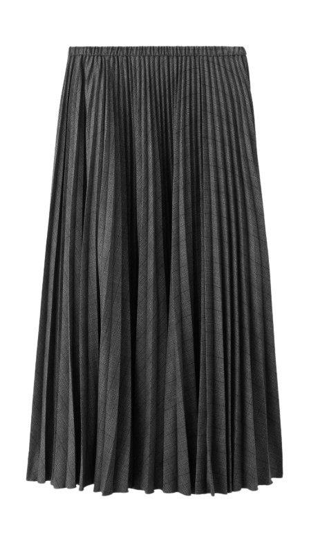 코스에서는 드레이핑 처리된 체크 미디 스커트를 체크 터틀넥 스웨터와 매치하고 브라운 부츠로 마무리해 모던하면서도 아방가르드한 룩을 연출했습니다. 가만 보니 체크 스커트에는 볼드한 청키 니트 스웨터도 곧잘 어울렸어요. 여름에는 심플한 화이트 탱크 톱과도 잘 어울릴 것 같았죠. 저처럼 미니멀한 스타일을 추구하는 사람에게 딱 맞는 아이템입니다.