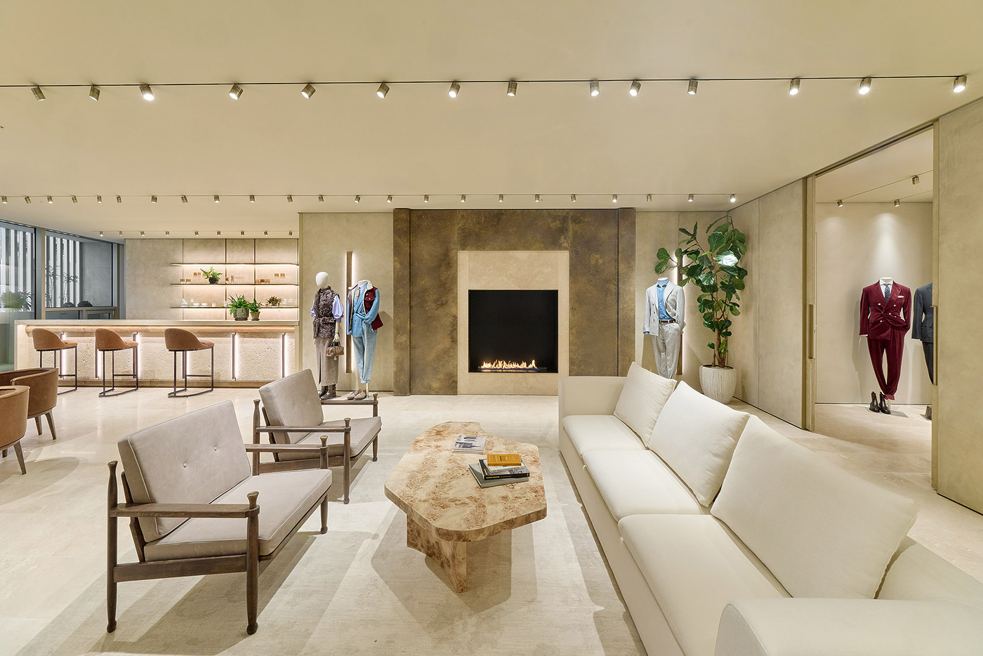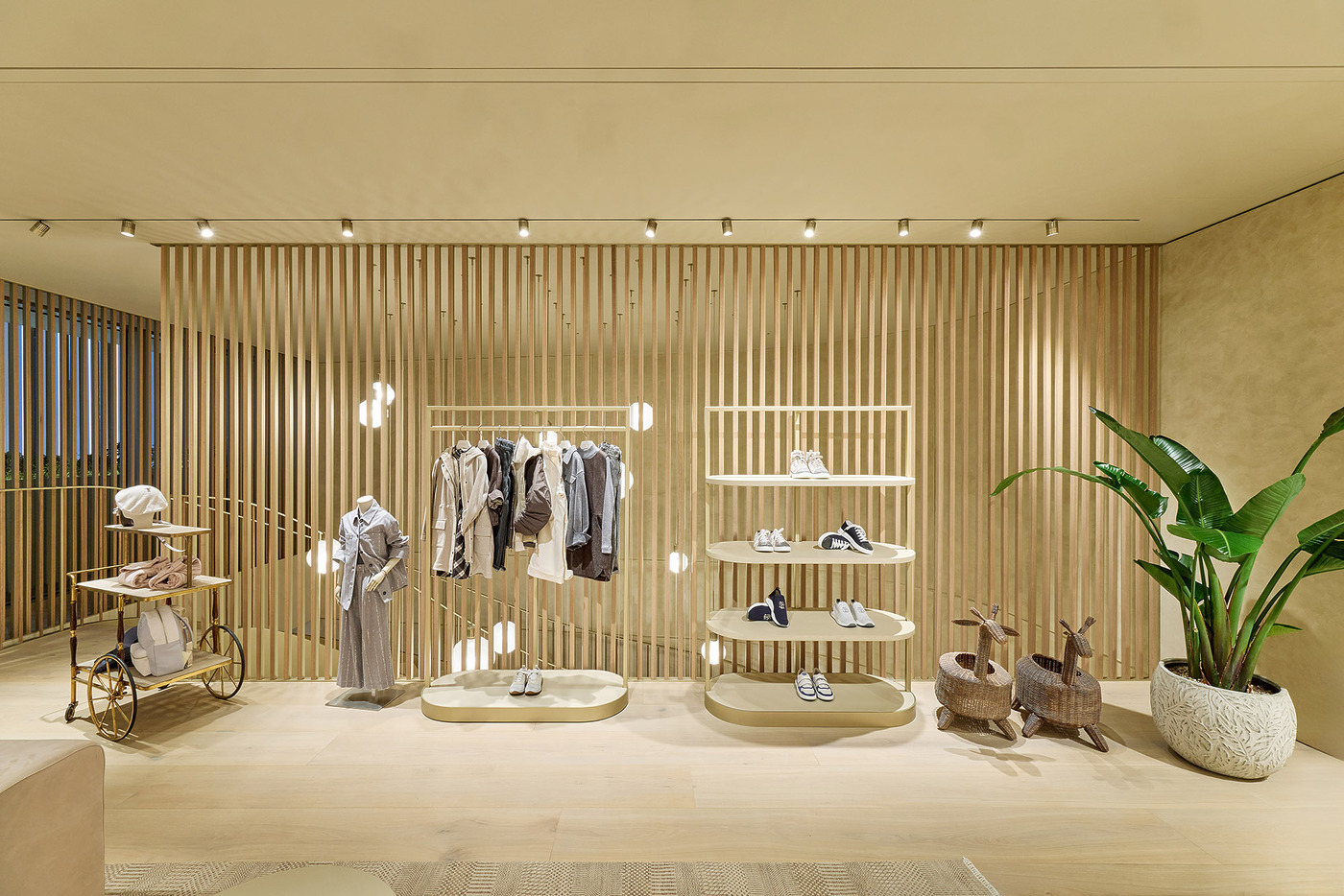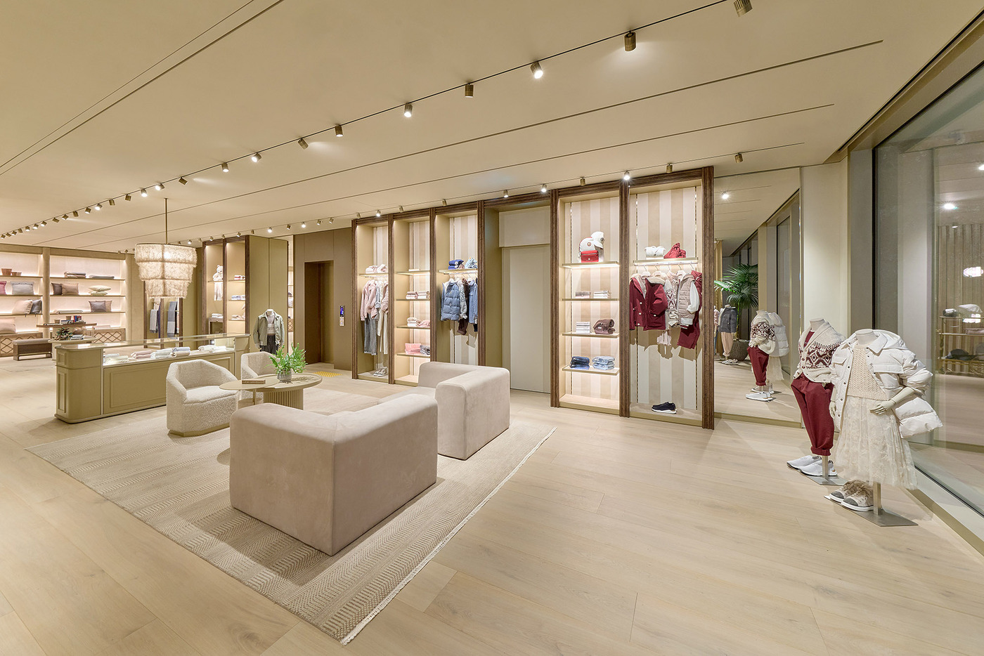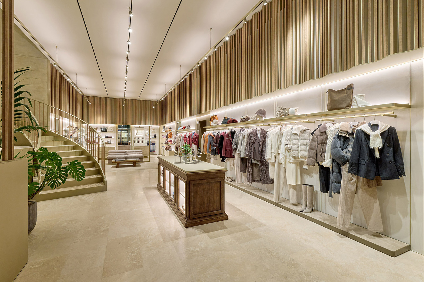 파사드는 고대 도시들이 방문객을 맞이하던 장엄한 아치에서 영감을 받았다. 브루넬로 쿠치넬리가 2014년 복원을 추진하며 다시 조명한 페루자의 2500년 된 에트루리아 문 역시 중요한 레퍼런스로 작용했다. 이른바 ‘보편적 아치’는 인간의 존엄성과 창조의 경이로움에 대한 브랜드의 신념을 시각적으로 드러내는 상징이다.