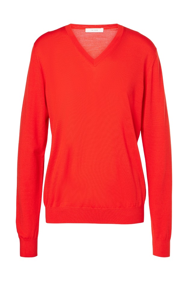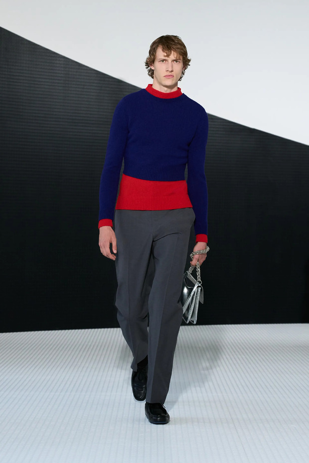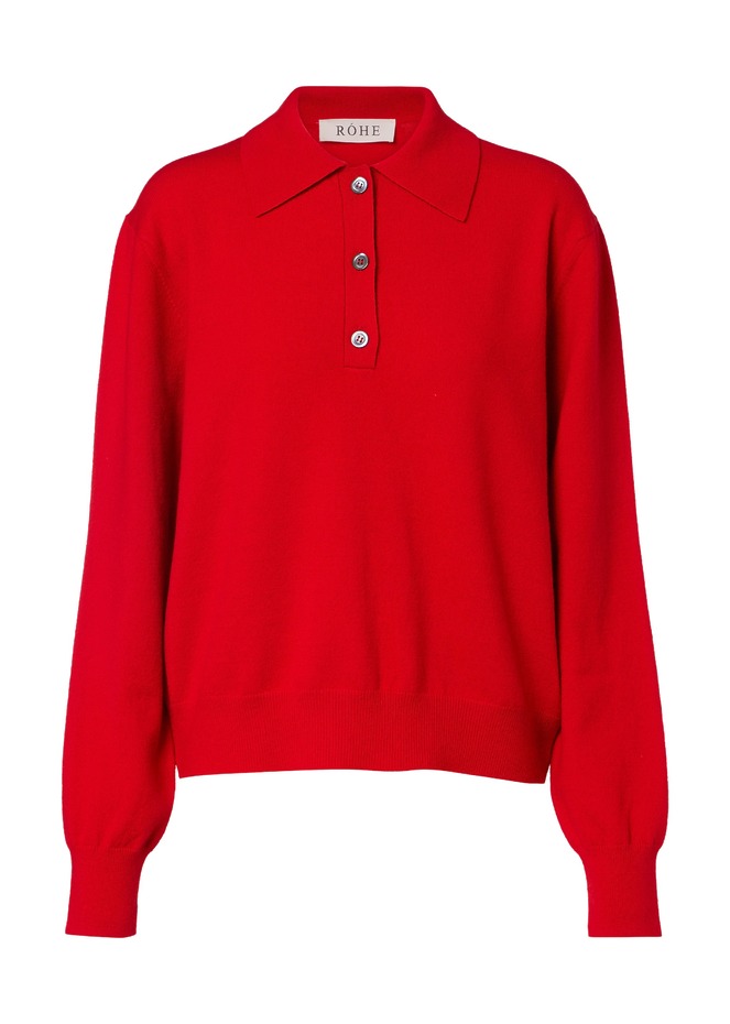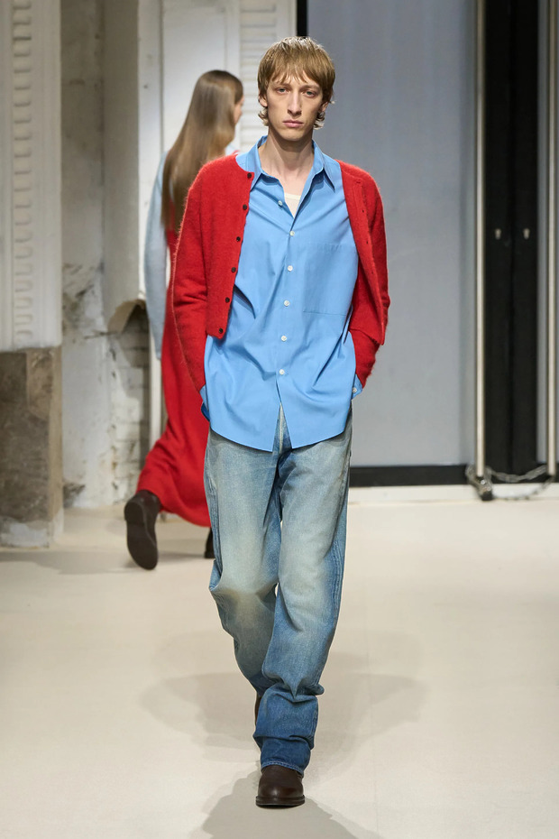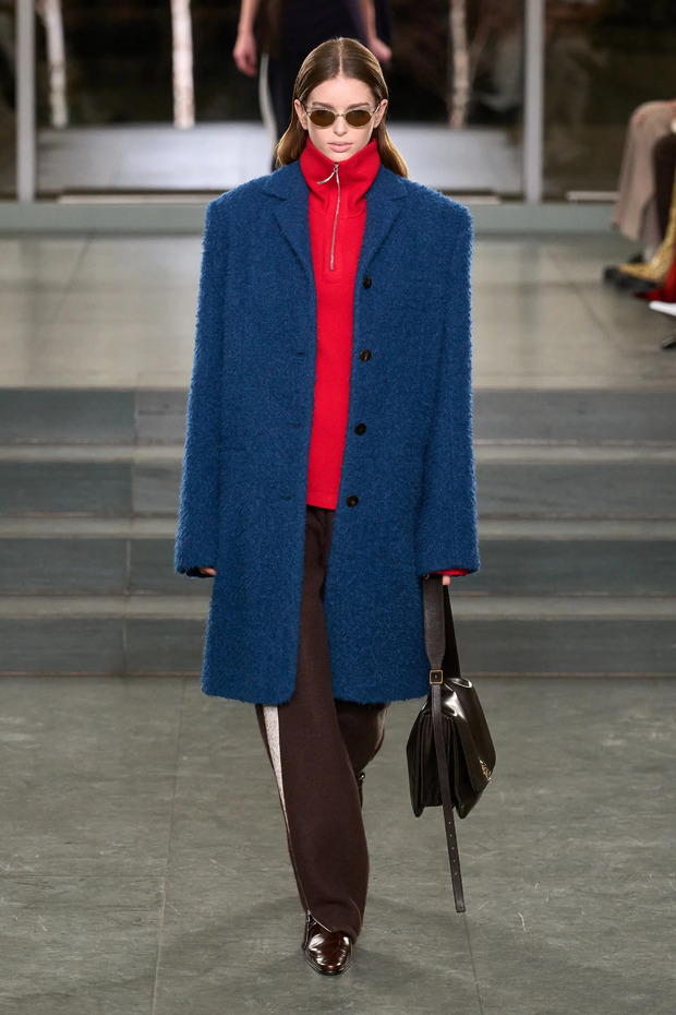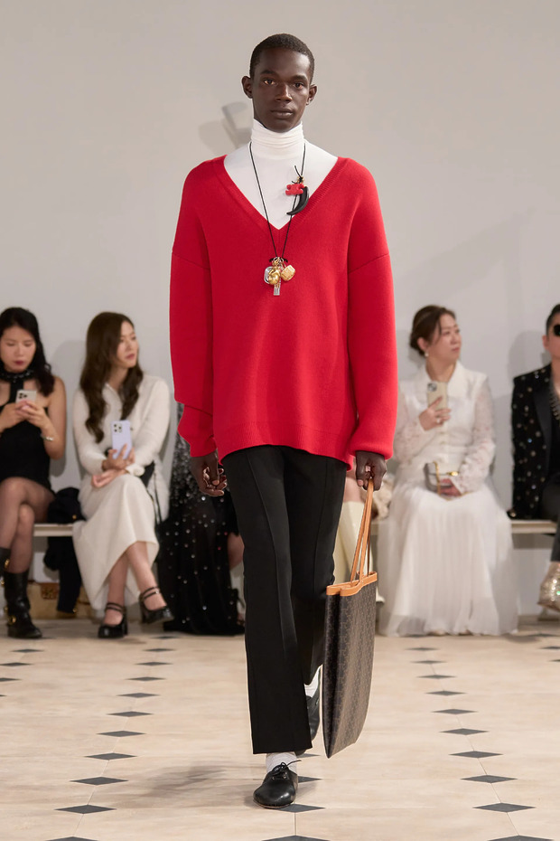 마이클 라이더의 셀린느 데뷔 컬렉션에서도 비슷한 룩을 찾아볼 수 있었습니다. 네크라인이 깊이 파인 빨간 니트와 얇은 터틀넥 조합은 내년 봄 스타일링의 주된 영감이 되기에 충분해 보였습니다. 파리지엔 스타일이 연상되는 더블 브레스트 코트 위에 무심하게 새빨간 니트를 두른 룩도 인상적이었고요.
