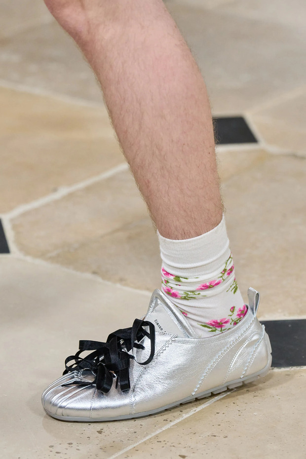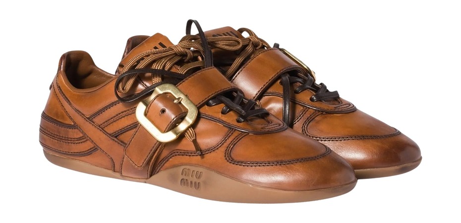 지금 패션 피플이 어른스럽게 차려입기를 원하기 때문일까요? 메시나 합성 소재 대신, 가죽을 사용해 만든 스니커즈가 런웨이에 등장하고 있습니다. 대표적인 예시가 바로 미우미우인데요. 2025 봄/여름 컬렉션에서 선보이며 화제를 일으킨 색색의 스니커즈를 바로 다음 가을/겨울 컬렉션에서 가죽으로 재해석했습니다. 두툼한 스트랩과 금빛 버클을 더한 덕분에 레트로한 분위기마저 느껴졌고요. 가죽 신발 특유의 포멀한 무드를 그대로 머금고 있으면서도, 스니커즈의 착화감까지 놓치지 않은 점이 특징입니다.