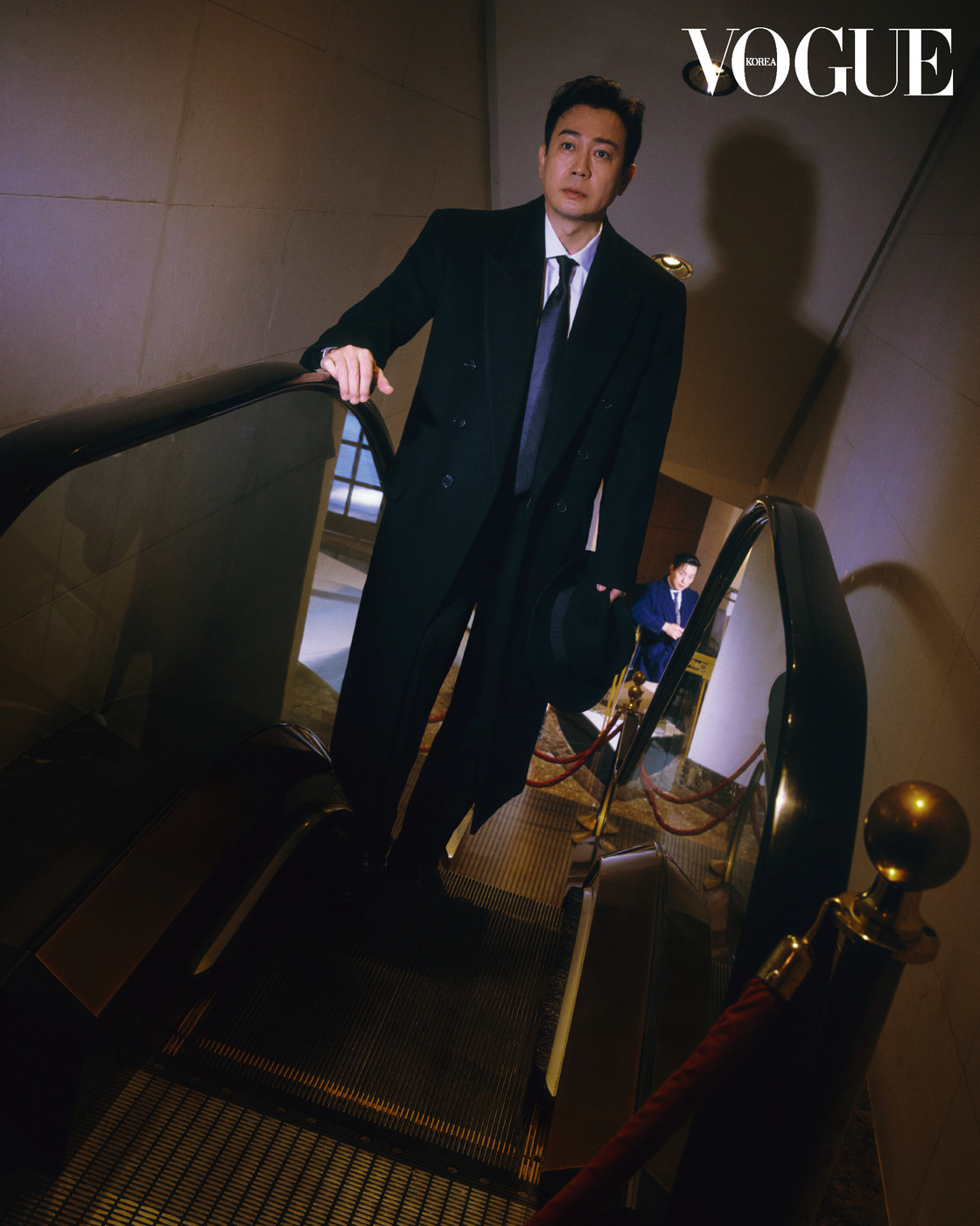 한편 느릿하고 말수 적은 천석중이 대구 사투리를 쓰게 된 데는 정성일의 적극적인 제안이 있었다. “감독님께서 첫 미팅 자리에서 제안하셨어요. 그간 수트 입는 역할을 많이 해서 그런지 기존 이미지와 어떻게든 달리 가보고 싶다고 하시면서 사투리를 써보면 어떨까 하시더라고요.” 그러고 보니 이번 드라마에서도, 오늘도 역시 깔끔하고 단정하고 멀끔한 수트 차림이다. “당시 권력을 잡은 사람들 가운데 경상도 사람이 많았다는 데 착안해 대구 사투리를 써보자는 생각이 들었어요. 마침 고향이 대구이기도 하고, 감독님께서 흔쾌히 좋다고 해주셨죠. 사투리는 잘못 쓰면 가볍거나 공격적으로 느껴질 수 있기에 단어 선택이나 어미 처리에 좀 더 신경을 썼어요. 그런데 서울에 산 지 꽤 되다 보니 사투리를 많이 잊어버렸더라고요. 고향 친구들과 통화하며 도움을 많이 받았죠. 친구들이 엄청나게 뿌듯해하더군요.(웃음)”