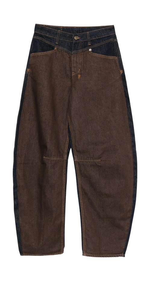 입는 것만으로도 존재감이 확실한 배럴 진은 허벅지부터 헐렁하게 퍼졌다가 종아리와 발목 쪽에서 다시 조여드는 곡선이 특징입니다. 이 실루엣은 한복의 ‘사폭 바지’를 떠올리게 하죠. 그래서인지 배럴 진은 헐렁한데도 어딘가 단정하고, 우아한 느낌입니다. 걸을 때마다 자연스럽게 출렁이는 곡선이 은근한 존재감을 만들어내고, 실루엣이 흐트러지지 않아 룩 전체가 안정감 있게 완성되죠. 흔한 선택은 아니기에 ‘이 실루엣을 고른 사람’은 분명히 인상을 남기죠. 그 점이 은근히 만족감을 줄 거예요. 스타일링에 의도가 정확하게 드러나는 순간, 룩 전체의 완성도도 자연스럽게 높아집니다.