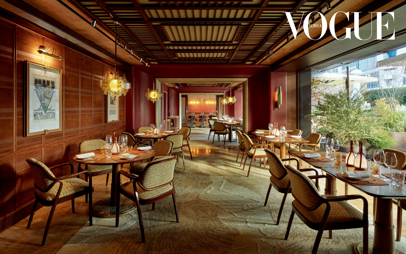 그리고 모두의 관심이 집중되는 다이닝. 6층에 레스토랑 제이피 앳 루이 비통(JP at Louis Vuitton)이 자리한다. 뉴욕 미쉐린 2스타 레스토랑 아토믹스(Atomix)로 유명한 셰프 박정현(Junghyun Park)이 총괄하는데, 루이 비통에서 처음으로 손잡은 한국 출신 셰프의 한식 레스토랑이다. 5코스의 헤리티지 테이스팅 메뉴는 달걀찜, 간장게장, 고추장으로 맛을 낸 랍스터, 비트와 갈비 소스의 한우 안심 등이다. 마지막으로 쌀 아이스크림, 막걸리 폼을 얹은 감귤 소르베까지, 재해석된 한국의 맛을 음미하며 긴 여정을 되짚어본다. 이 정도면 서울과 루이 비통은 절친이라 해도 될 듯하다.