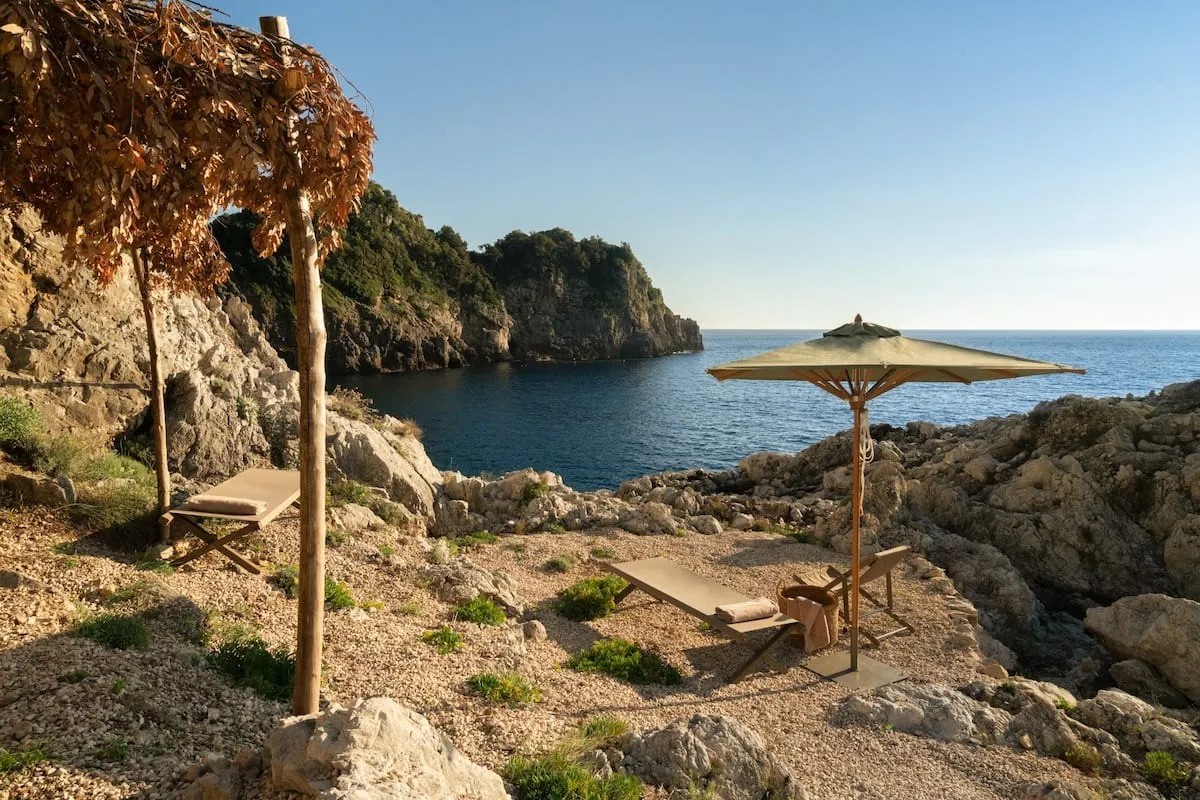 하이라이트: 숙소에는 바다로 내려가는 계단이 있으며, 수변 공간은 선베드와 파라솔을 갖춰 물가에서 편안한 휴식을 취할 수 있다.