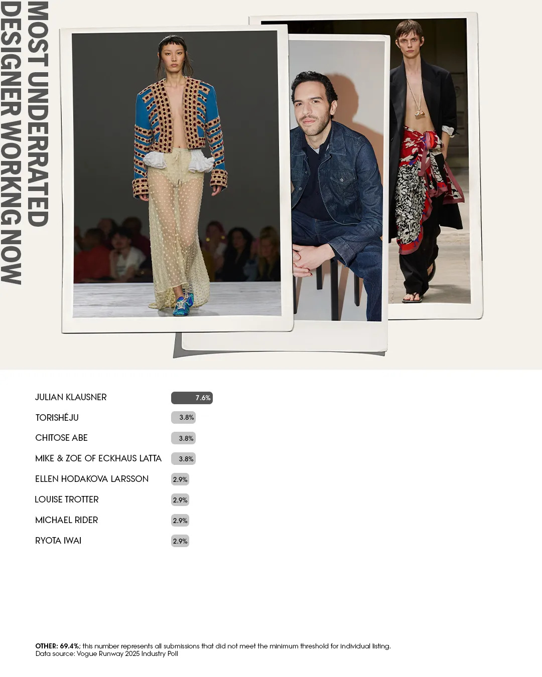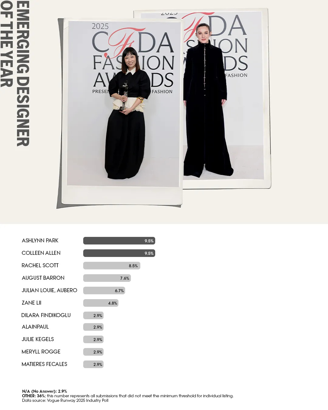 <보그>는 2023년부터 ‘연말 투표’를 진행해오고 있습니다. 에디터, 스타일리스트, 콘텐츠 크리에이터 등 업계 관계자들과 함께 ‘올해의 디자이너’, ‘올해의 컬렉션’, ‘가장 과소평가된 디자이너’, 그리고 ‘올해의 라이징 디자이너’ 등을 선정하고 있죠.