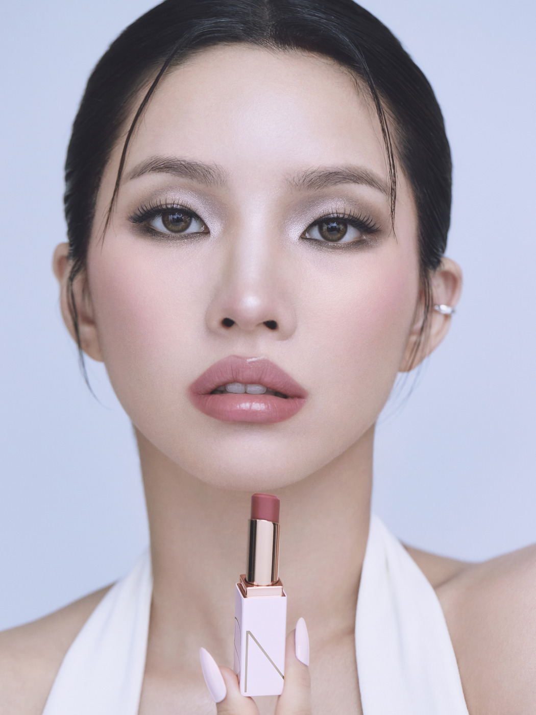 누구보다 빠르게 변화를 감지하고, 언제 어디서나 한계를 뛰어넘어 새로운 지평을 열어가는 나스와 전소연은 늘 새로운 퍼포먼스를 만들어낸다. 나스의 쿼드 아이섀도우 코 롱과 생폴드방스의 다층적 텍스처는 전소연의 음악적 레이어처럼 입체적으로 쌓여 독보적인 아우라를 자아낸다. 경계를 밀어붙여 자신의 세계를 확장시키는 두 아티스트의 만남답게 ‘NEW 에프터 글로우 립 밤 돌체 비타’는 시크함과 여성스러운 무드를 모두 담아냈다. 차가운 듯 부드러운 로즈빛, 맑게 피어오르는 극강의 반짝임은 찬란하고 압도적인 룩을 완성한다.