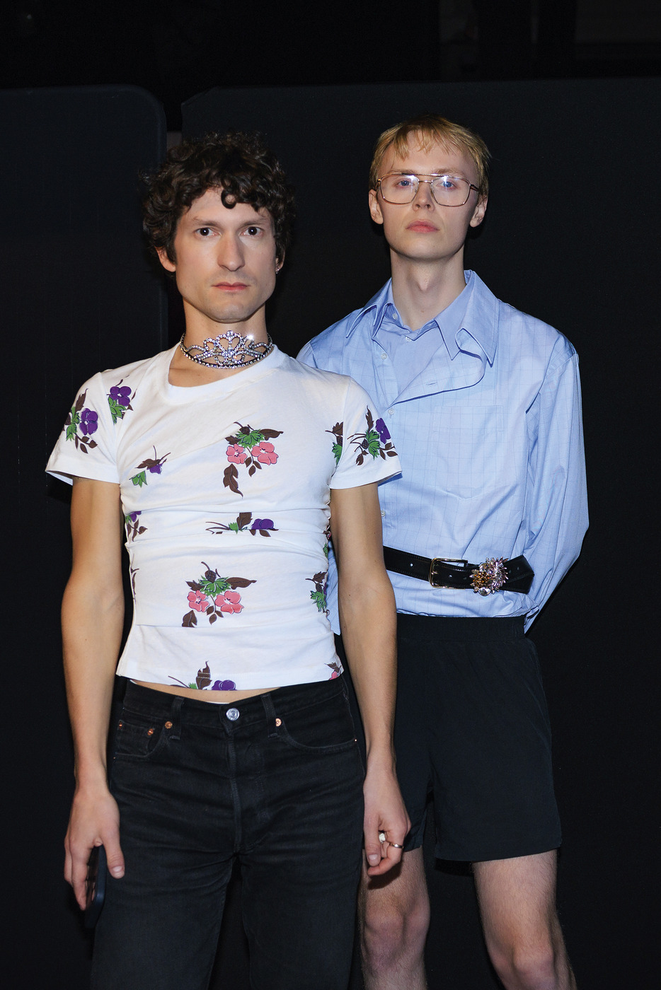 왜 그렇게 기분이 안 좋았을까? 어거스트 배런은 뉴욕 태생의 벤자민 배런(Benjamin Barron)과 오슬로 출신의 브로르 어거스트 베스트보(Bror August Vestbø)가 이끄는 브랜드다. 5년 전부터 파리에서 활동하는 이들은 엄격하고 진지한 ‘패션 수도’에 반항 정신과 위트를 불어넣고 있다. 그런지 무드에 화려함을 접목한 그들의 디자인은 익숙한 공식을 뒤엎으며, ‘시크함’을 재정의한다. 한마디로 파리 패션 위크에 참석하는 모두가 어거스트 배런의 쇼 티켓을 탐냈다는 의미다.
