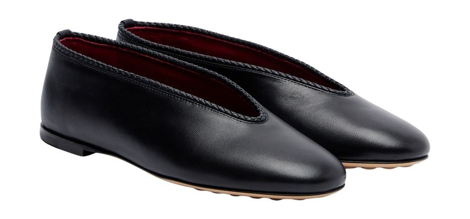 보테가 베네타로사 레더 발레리나 플랫