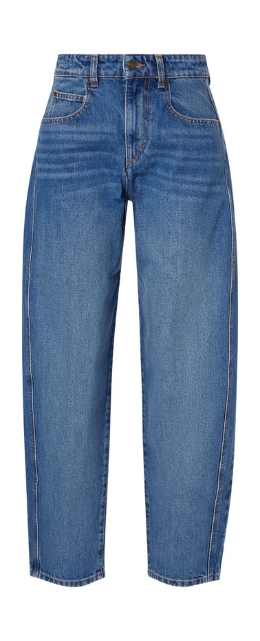 헐렁한 청바지도 우아해졌습니다. 허벅지는 넉넉하고 밑단으로 갈수록 둥글게 떨어지는 실루엣이죠. 상의 선택만 안정적이라면 배럴 진은 평범한 데님보다 스타일의 방향을 더 분명히 보여줍니다.