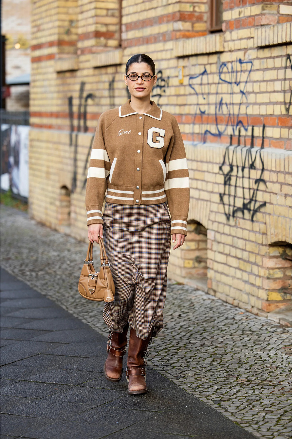 체크 스커트와 가죽 재킷의 조합은 ‘정돈되지 않은 멋’을 자아내는 데 특화되어 있습니다. 보다 깔끔한 인상을 주고 싶다면, 프레피 스타일을 상징하는 아이템인 바시티 재킷을 선택해보세요. 핵심은 컬러 매치입니다. 재킷과 치마, 그리고 액세서리 등 모든 아이템의 컬러를 전부 같은 톤으로 통일한다면 더욱 단정한 룩을 연출할 수 있거든요.