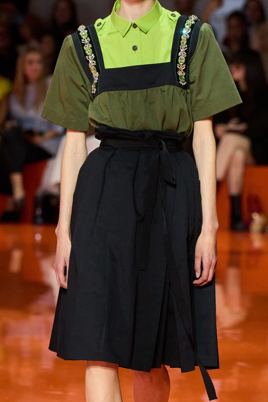 디올의 데뷔 쇼에서 가장 강렬한 존재감을 드러낸 아이템은 단연 마이크로 스커트였습니다. 데님, 가죽, 핑크, 카키 등 소재와 컬러 역시 다양했죠. 재킷부터 러플 블라우스까지, 상의 스타일링에 따라 전혀 다른 분위기를 연출할 수 있습니다.