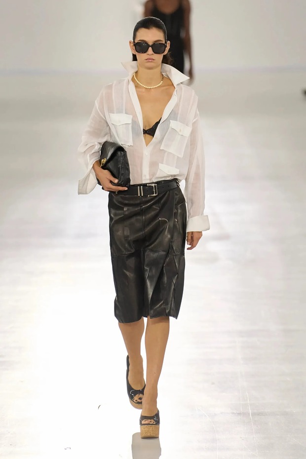 가죽 스커트는 더 이상 그런지나 펑크 스타일에만 머물지 않습니다. 이제는 세련된 이미지의 핵심 아이템으로 자리 잡았죠. 생 로랑이나 에르마노 설비노처럼 화이트 셔츠와 입어보세요. 클래식한 패브릭 펜슬 스커트를 대신해 오피스 룩의 과감한 대안이 되어줍니다.