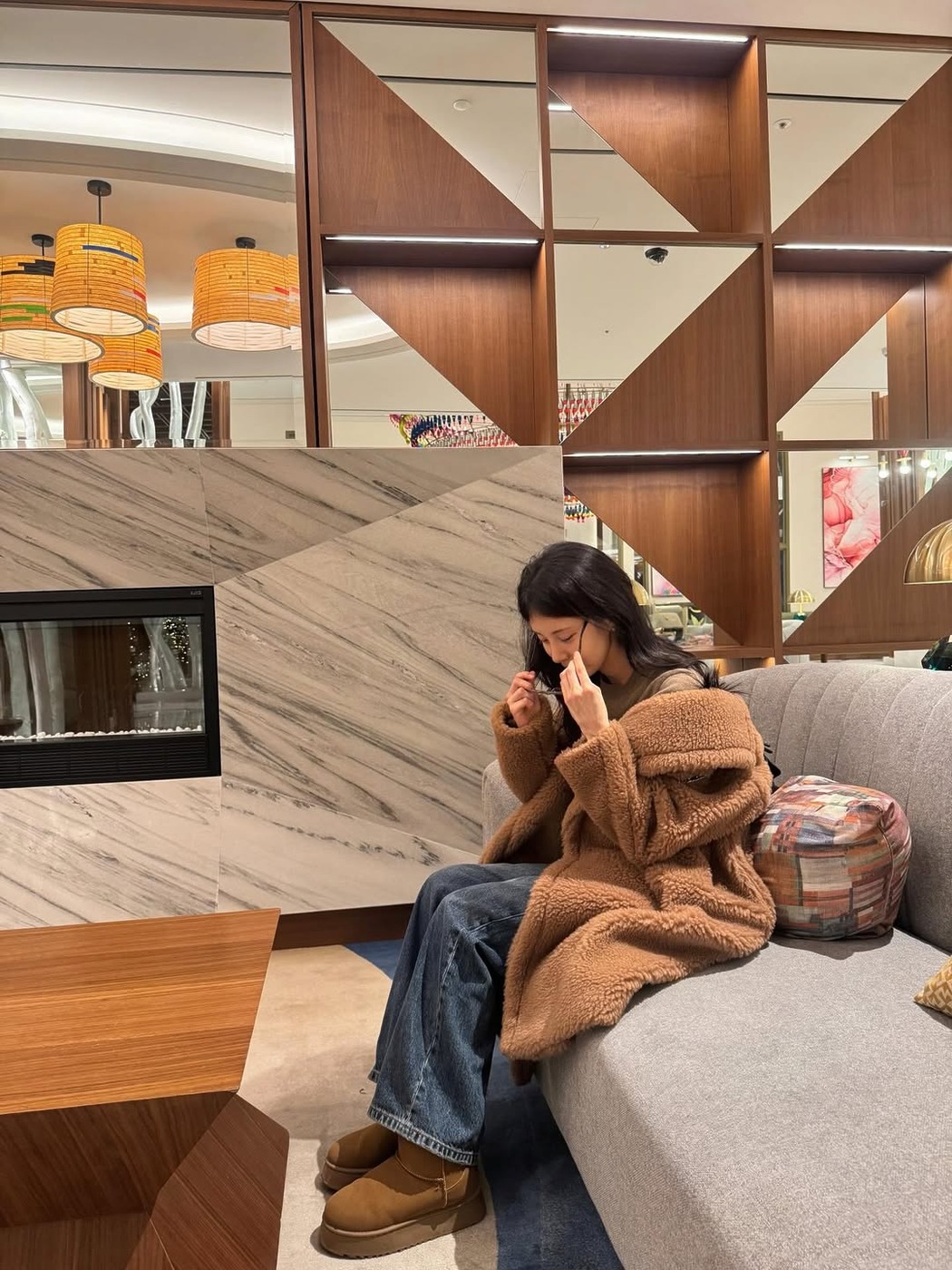 조금 더 포근한 분위기를 원한다면 서현의 테디 베어 코트를 눈여겨봐도 좋겠습니다. 테디 베어 코트는 따뜻해 보이는 질감 덕분에, 이너를 간결하게 입어도 스타일이 완성되죠. 서현은 청바지로 편하게 중심을 잡고, 어그 부츠로 겨울 분위기를 마무리했어요. 추운 날에도 멋을 포기하고 싶지 않을 때 매치해보세요.