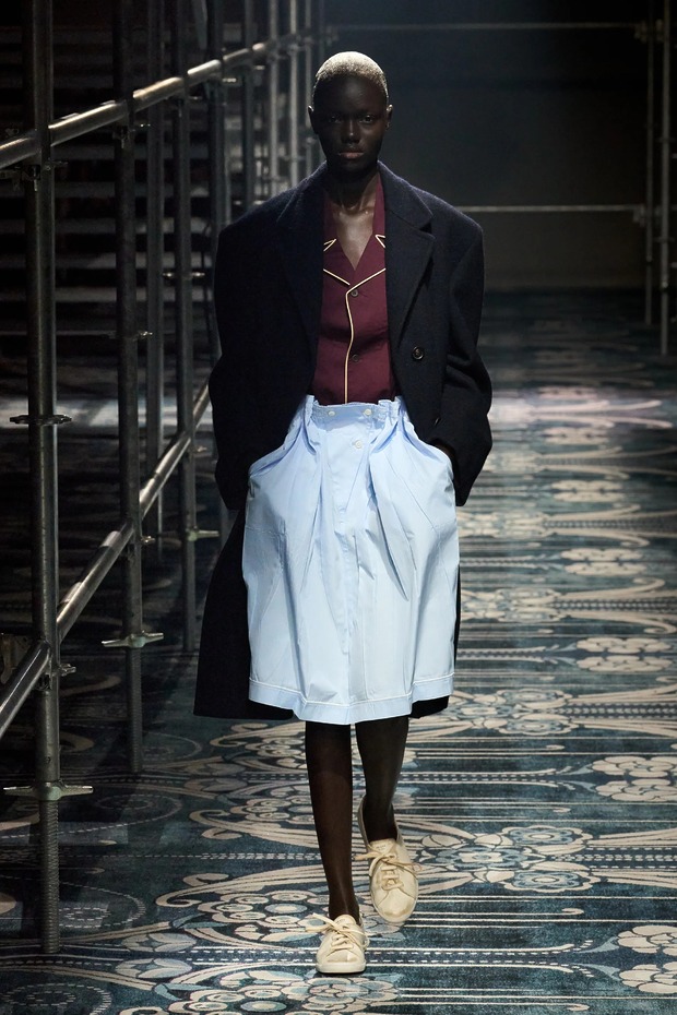 이 트렌드에 마침표를 찍은 건 미우치아 프라다입니다. 지난해 뉴발란스와의 협업으로 만든 스웨이드 스니커즈 열풍을 주도한 그녀가 순식간에 방향을 바꿔버렸죠. 사실 새틴 실루엣은 모피와 투박한 울 소재로 가득했던 2025 가을/겨울 룩에서 선보인 바 있습니다. 두툼한 아우터 안으로 얇은 잠옷들이 줄을 이었거든요. 그리고 2026 봄/여름엔 대부분의 룩에 새틴을 활용함으로써 가볍고 부드러워지고 싶다는 사회적 욕구를 반영했습니다.