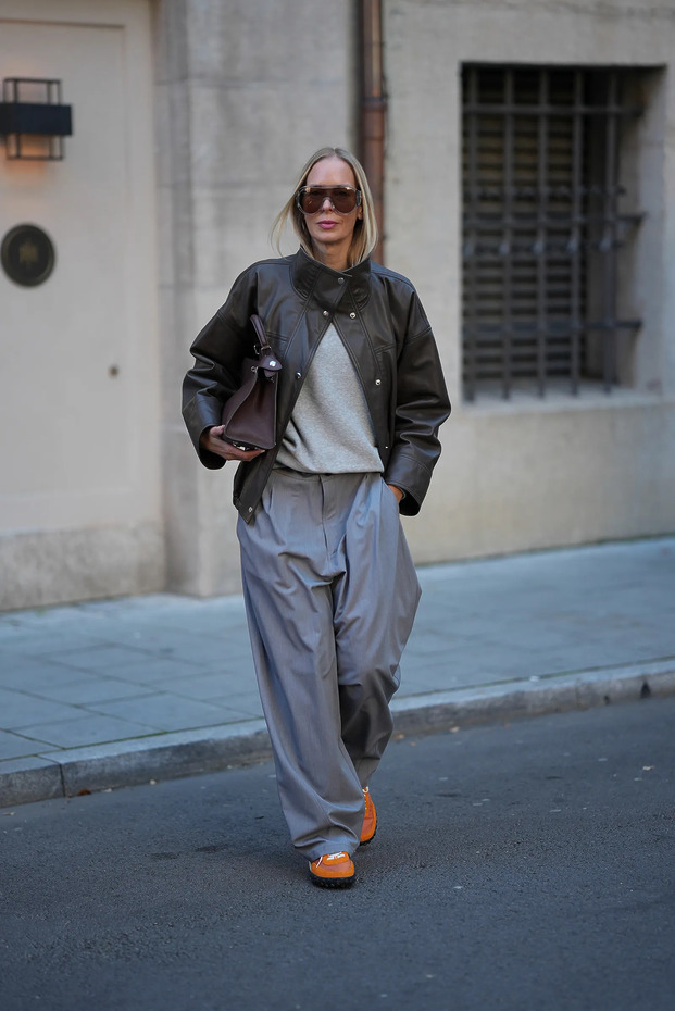 거리 위의 룩을 보세요. 그레이 팬츠와 블랙 레더 재킷에 오렌지 스니커즈를 더하면 룩이 한결 가벼워지고, 블루 데님과의 보색 조합이나 그린 톤 위에 살짝 얹는 방식도 부담 없이 시도할 수 있습니다. 명랑함과 대담함 사이를 오가는 선택지가 생각보다 넓은 걸 실감할 수 있죠.