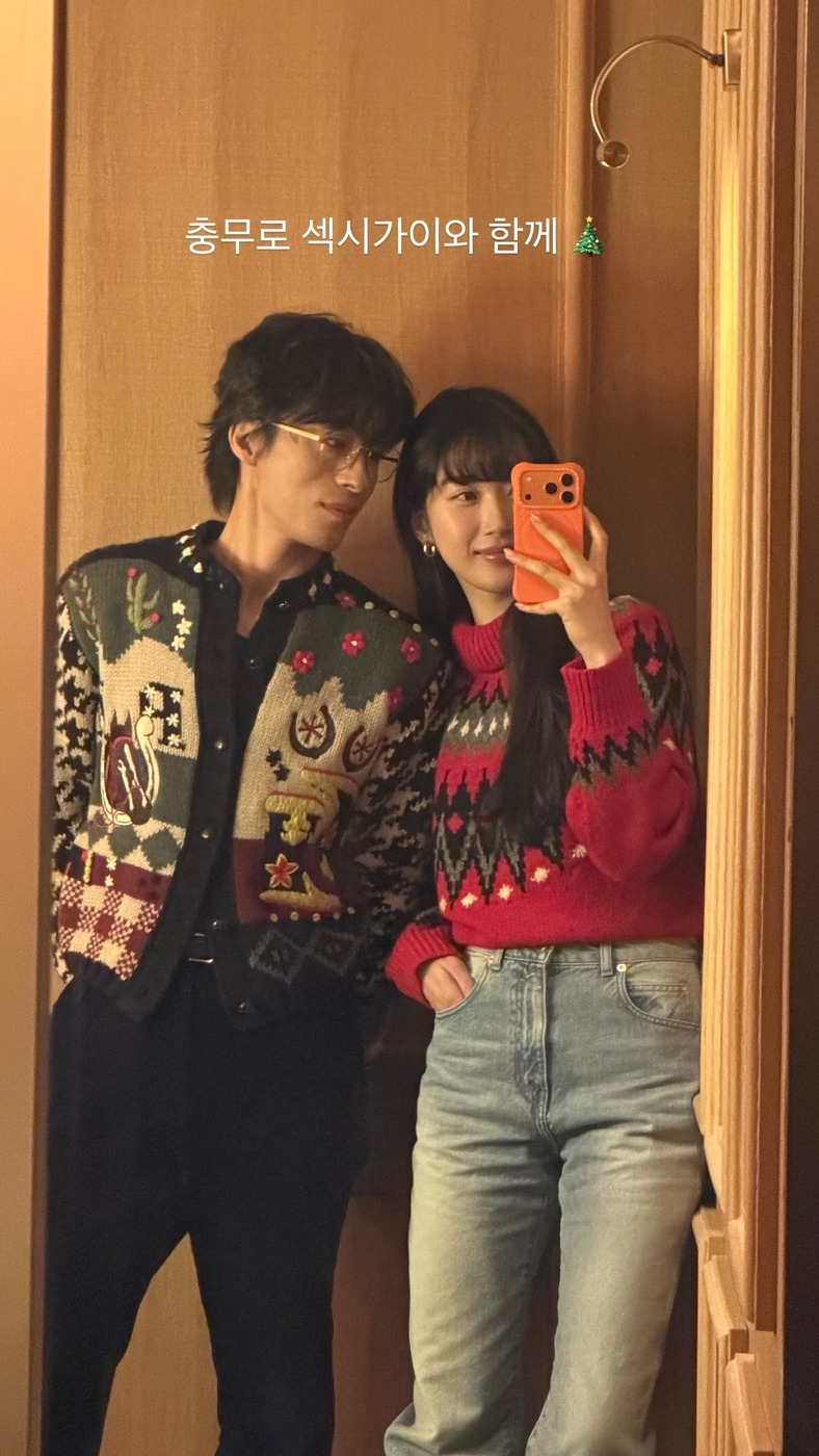 시즌에 맞는 아이템을 고르는 건 어떨까요? 문가영과 구교환은 홀리데이 시즌과 어울리는 귀여운 스웨터를 골랐습니다. 포근한 머플러, 털이 복슬복슬한 니트 비니, 컬러만 다른 어그 부츠 같은 아이템도 좋겠죠.